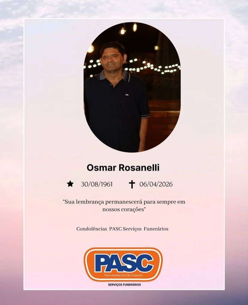 Osmar Rosanelli, de 64 anos acaba falecendo nessa segunda-feira (06).