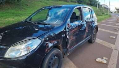 Um Sandero e uma carreta se envolveram em um acidente de trânsito na BR-277, nas proximidades do Trevo Cataratas, em Cascavel na tarde desta quarta-feira (8).