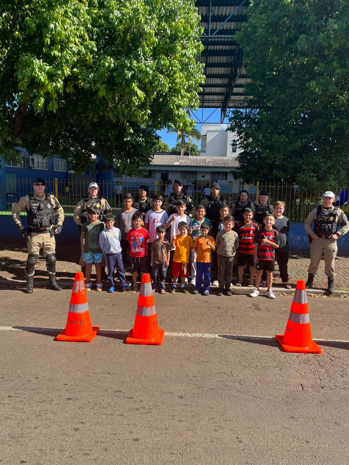 Na manhã desta quinta-feira (9), o 21º Batalhão da Polícia Militar, por meio do Pelotão de Trânsito e com apoio da ROCAM, realizou uma blitz educativa em frente à sede da unidade, em Francisco Beltrão. A ação contou com a participação de alunos do projeto Formando Cidadão.