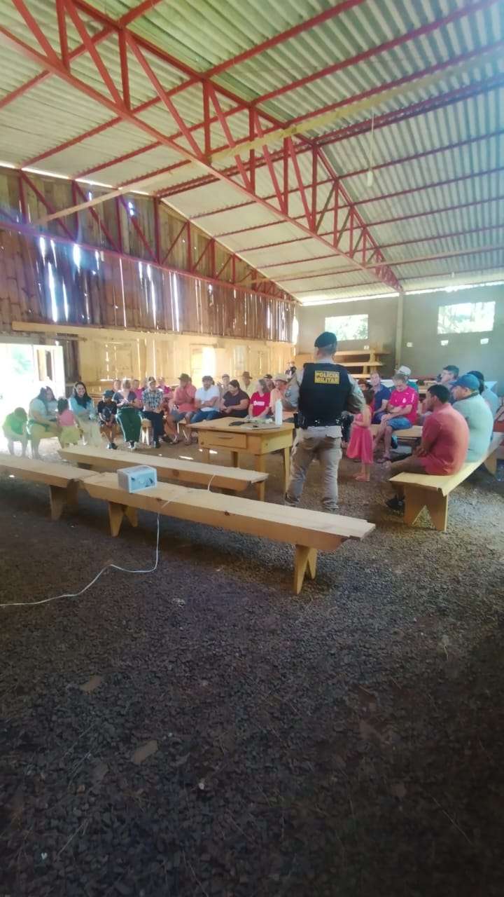 Durante a reunião, foram repassadas orientações voltadas à prevenção da criminalidade no meio rural, com destaque para a adoção de medidas de segurança nas propriedades e a importância da participação ativa dos moradores no compartilhamento de informações com as forças de segurança.