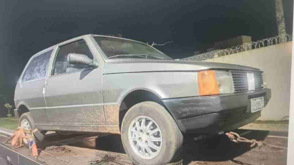 A equipe foi acionada via Central de Atendimento e Despacho (CAD) após a informação de que um automóvel estaria abandonado na Rua São Gabriel. No local, os policiais encontraram um Fiat Uno Mille Brio, de cor cinza, ano 1991.