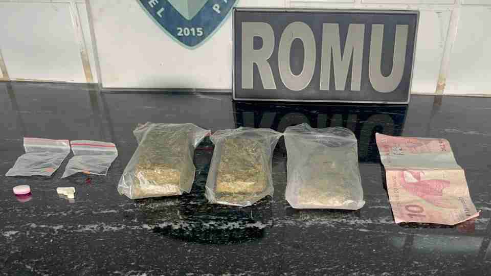 A abordagem foi realizada por uma equipe da Romu, que encontrou com a suspeita 76 gramas de maconha, dois comprimidos de MD e duas unidades de LSD, além de R$ 10 em dinheiro.