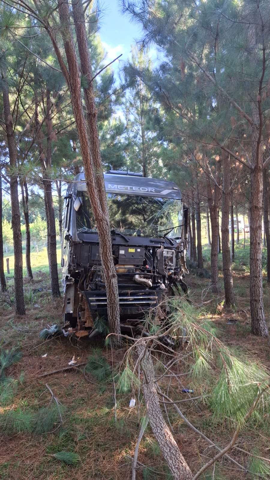 Com a colisão, o segundo veículo perdeu o controle da direção e saiu da pista, parando em uma área de reflorestamento às margens da rodovia.