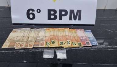 Na revista, os agentes encontraram duas porções de cocaína, além de uma quantia em dinheiro. O veículo utilizado na ação foi apreendido.