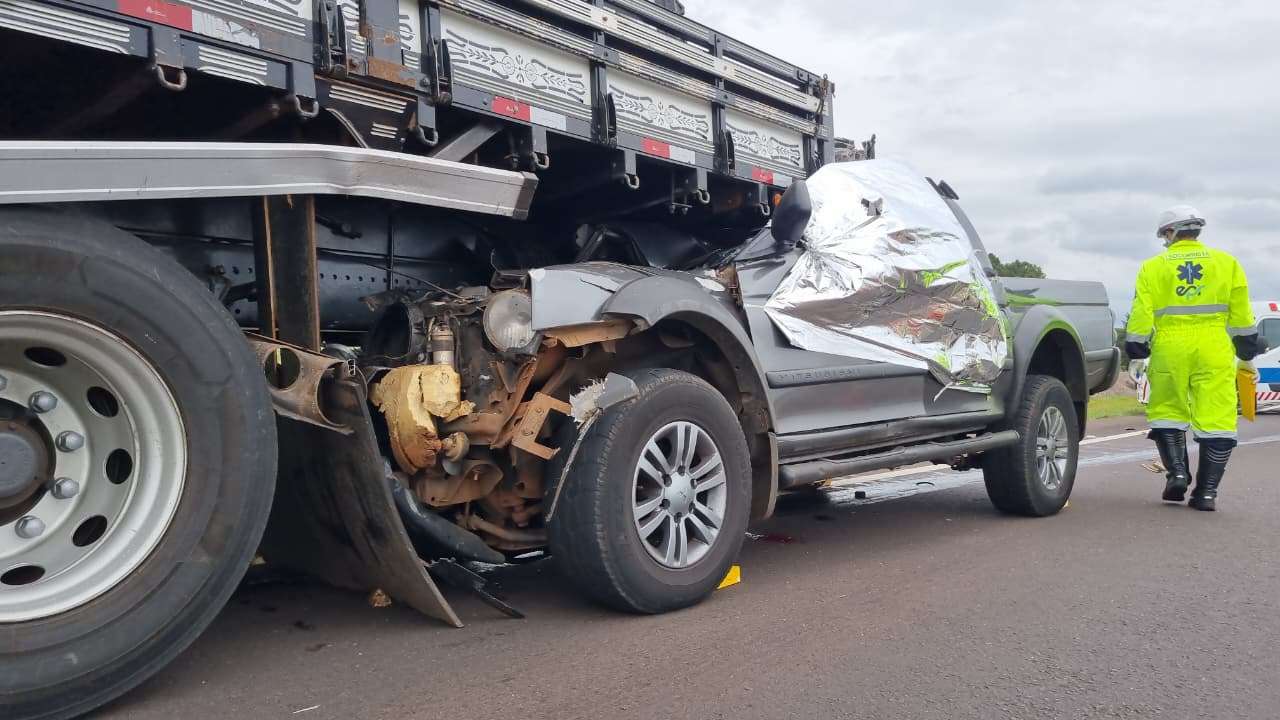 O motorista de uma caminhonete L200 Triton morreu ao colidir contra a traseira de um caminhão carregado com tratores na BR-163, em Cascavel na tarde desta quarta-feira (15).