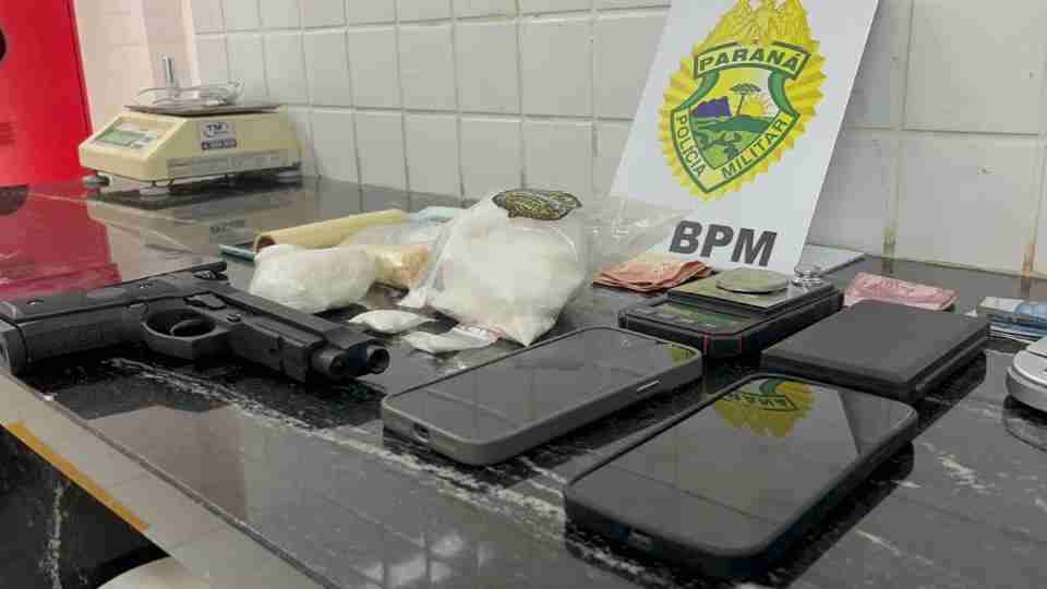 Três pessoas foram detidas por envolvimento com drogas após uma abordagem da Polícia Militar no Centro de Cascavel nesta quarta-feira (15). A ação começou na esquina da Rua Marechal Floriano com a Avenida Brasil e terminou com apreensões também em uma casa no bairro Riviera.