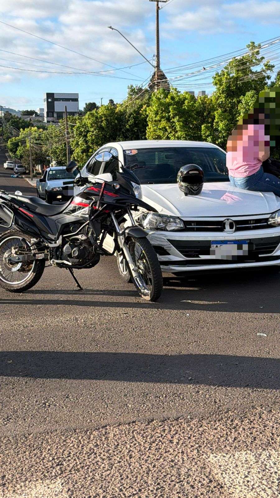 Nessa manhã de sexta-feira (17), foi registrado um acidente de trânsito envolvendo uma motocicleta Honda XRE e um veículo Volkswagen no cruzamento das ruas Venezuela e Maringá, no bairro Luther King, em Francisco Beltrão.