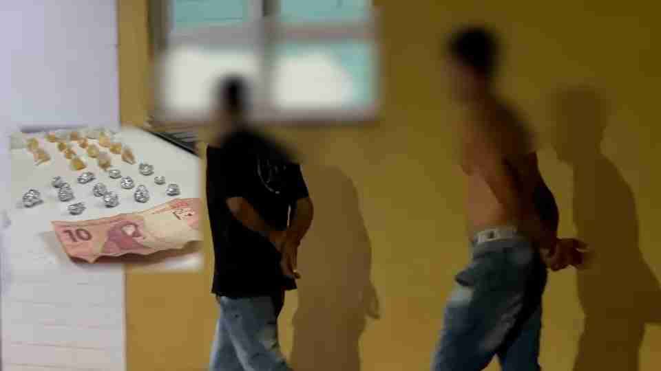 Com um dos abordados, os guardas encontraram uma pedra de crack embalada em papel alumínio e R$ 10 em dinheiro. Já com o outro, foram localizadas porções de crack e cocaína acondicionadas em embalagens plásticas.
