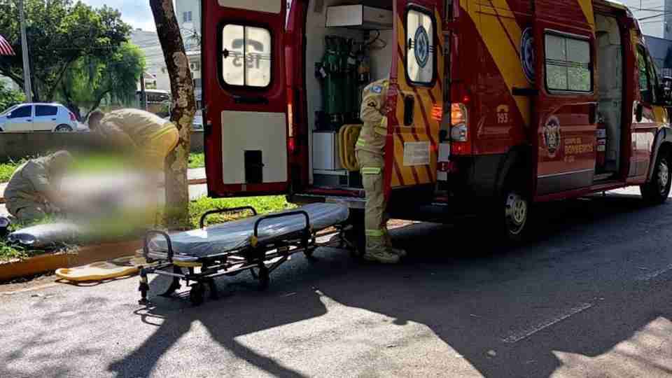 Uma equipe do Corpo de Bombeiros foi acionada para prestar socorro à vítima, que foi encaminhada para atendimento hospitalar com fraturas fechada no braço direito e na perna esquerda.
