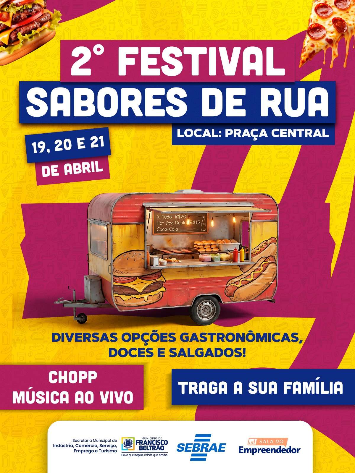 O fim de semana em Francisco Beltrão será marcado por uma programação especial que reúne cultura, lazer e gastronomia. Em comemoração ao Dia Municipal do Food Truck, o município promove, nos dias 19 e 20, um evento no Calçadão da Praça Eduardo Virmond Suplicy, com atrações para toda a família.