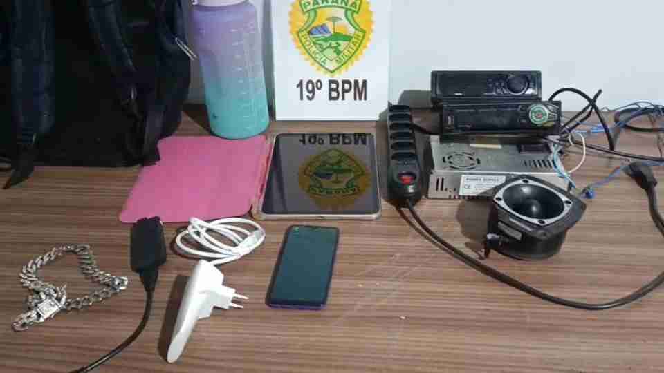 Ainda conforme a PM, entre os materiais apreendidos havia também um tablet furtado da mesma residência, além de rádios automotivos e outros objetos sem comprovação de origem.