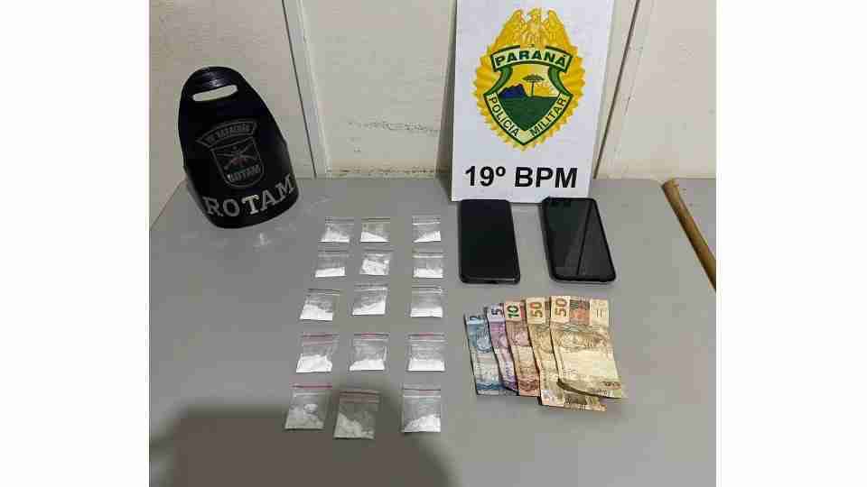 Na abordagem, foram encontradas 10 porções de cocaína com o condutor, além de R$ 117 em dinheiro. Depois, no local onde o passageiro havia jogado o objeto, os policiais localizaram mais cinco porções da droga, totalizando 17,6 gramas. Também foram apreendidos celulares com conversas relacionadas ao tráfico. Os dois foram encaminhados à delegacia.