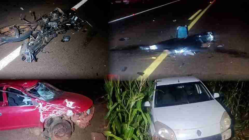 A ocorrência envolveu uma motocicleta Yamaha YBR 125, um Chevrolet Celta, com placas de Toledo, e um Renault Sandero, ambos com placas do Mercosul.