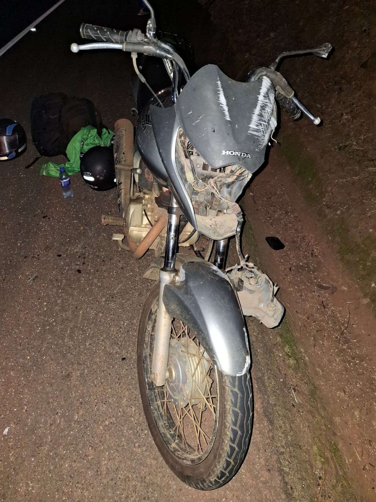 O acidente resultou em danos materiais na motocicleta e ferimentos em ambos os ocupantes.