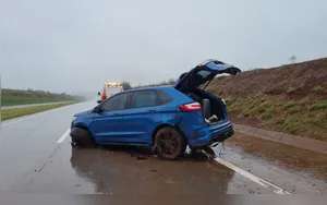 Um Volkswagen Voyage acabou saindo da pista. Uma ambulância foi acionada mas nem o condutor nem os três passageiros ficaram feridos.