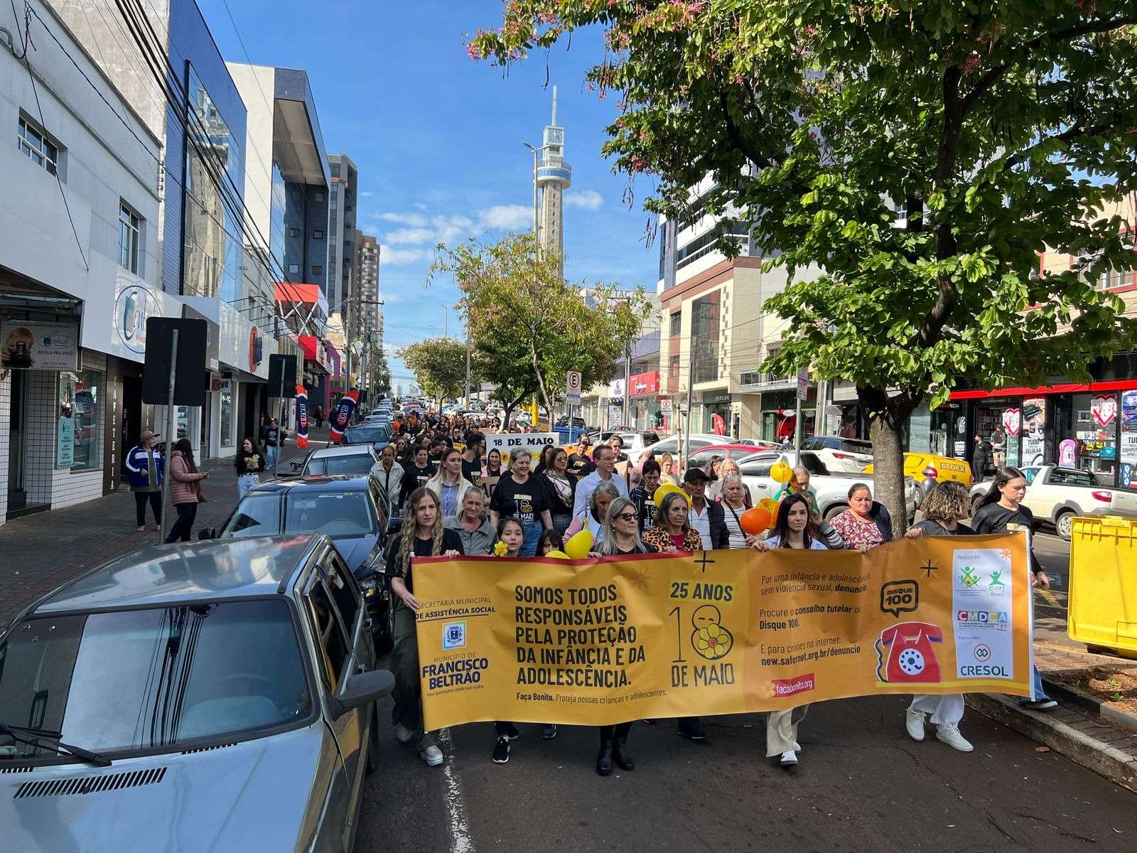 O ato contou com a presença de lideranças como o prefeito Antônio Pedron, a primeira dama Rose Pedron, a vice-prefeita Lurdinha Bertani, a presidente do Conselho Tutelar, Pamela da Cruz, e representantes da rede de proteção (Creas, comissões de enfrentamento à violência, conselho municipal dos direitos da criança e adolescente, entre outros). Participaram os vereadores Marcos Folador, Emanuel Venzo, Mara Fornazari e Maria de Fátima, além de estudantes e integrantes de projetos do Município. O diretor superintendente da Cresol tradição, Jackson Joaquim, representou a cooperativa, apoiadora da campanha.