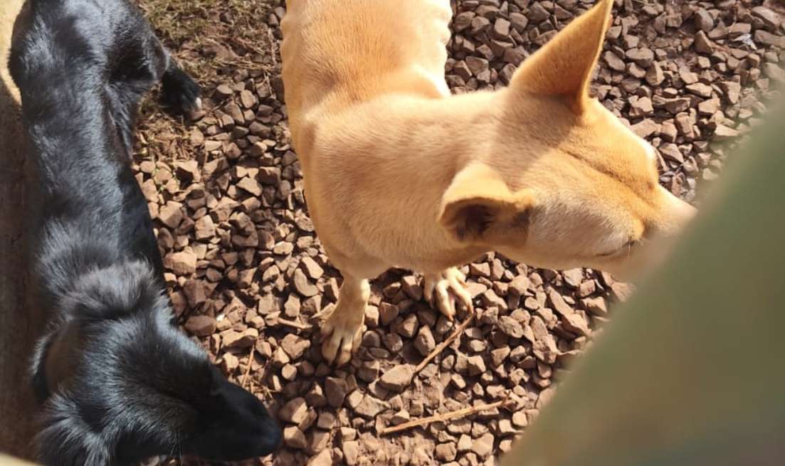 Os cachorros apresentavam aparente estado de desnutrição, não tendo sido constatado o fornecimento de alimentos. Em relação ao fornecimento de água, foram encontrados recipientes que aparentemente armazenavam água da chuva, mas os potes estavam repletos de larvas e bolores.