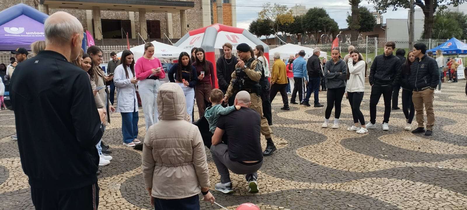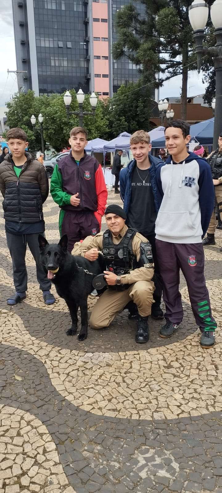 Na manha deste sábado (14), a equipe Canil da Polícia Militar participou de uma ação de policiamento ostensivo e de proximidade na Praça Central de Francisco Beltrão. A iniciativa fez parte do cumprimento da escala extra jornada e teve como objetivo garantir a segurança dos participantes de um evento realizado pelas Instituições de Ensino Superior da região.