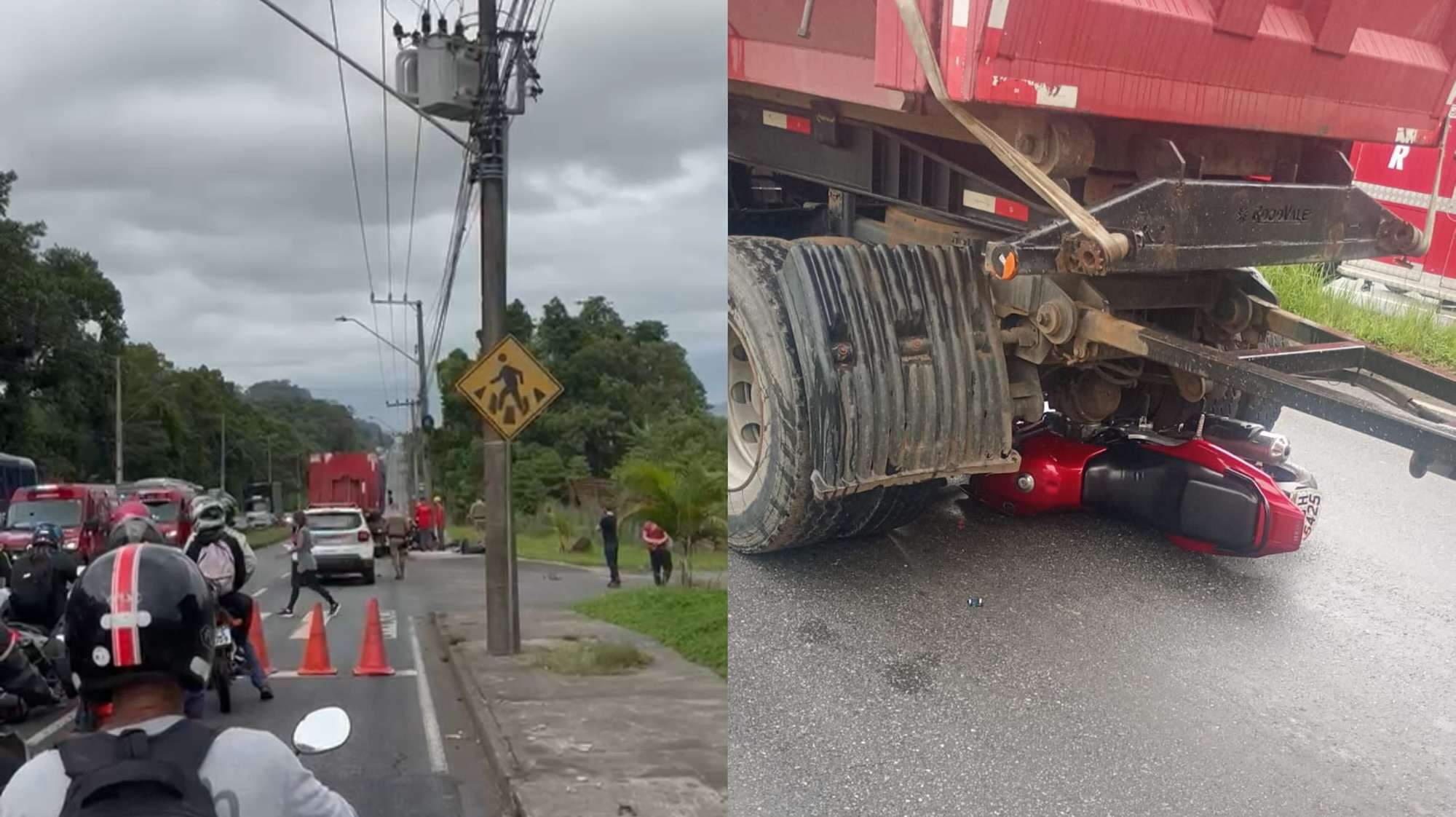 Um motociclista morreu após ser atingido por um caminhão na manhã desta sexta-feira (23) em uma d...