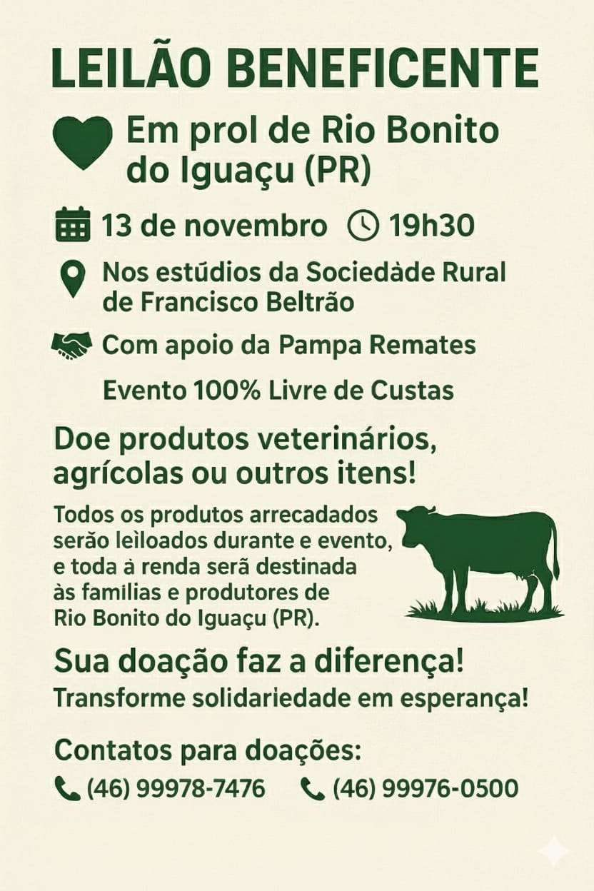 No dia 13 de novembro, a partir das 19h30, acontece um Leilão Beneficente em prol das famílias e ...