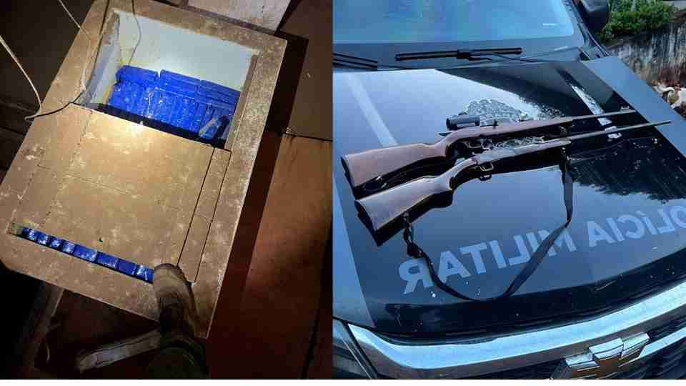 Quase 900 quilos de maconha e arsenal foram localizados em depósito de cereais, em propriedade ru...