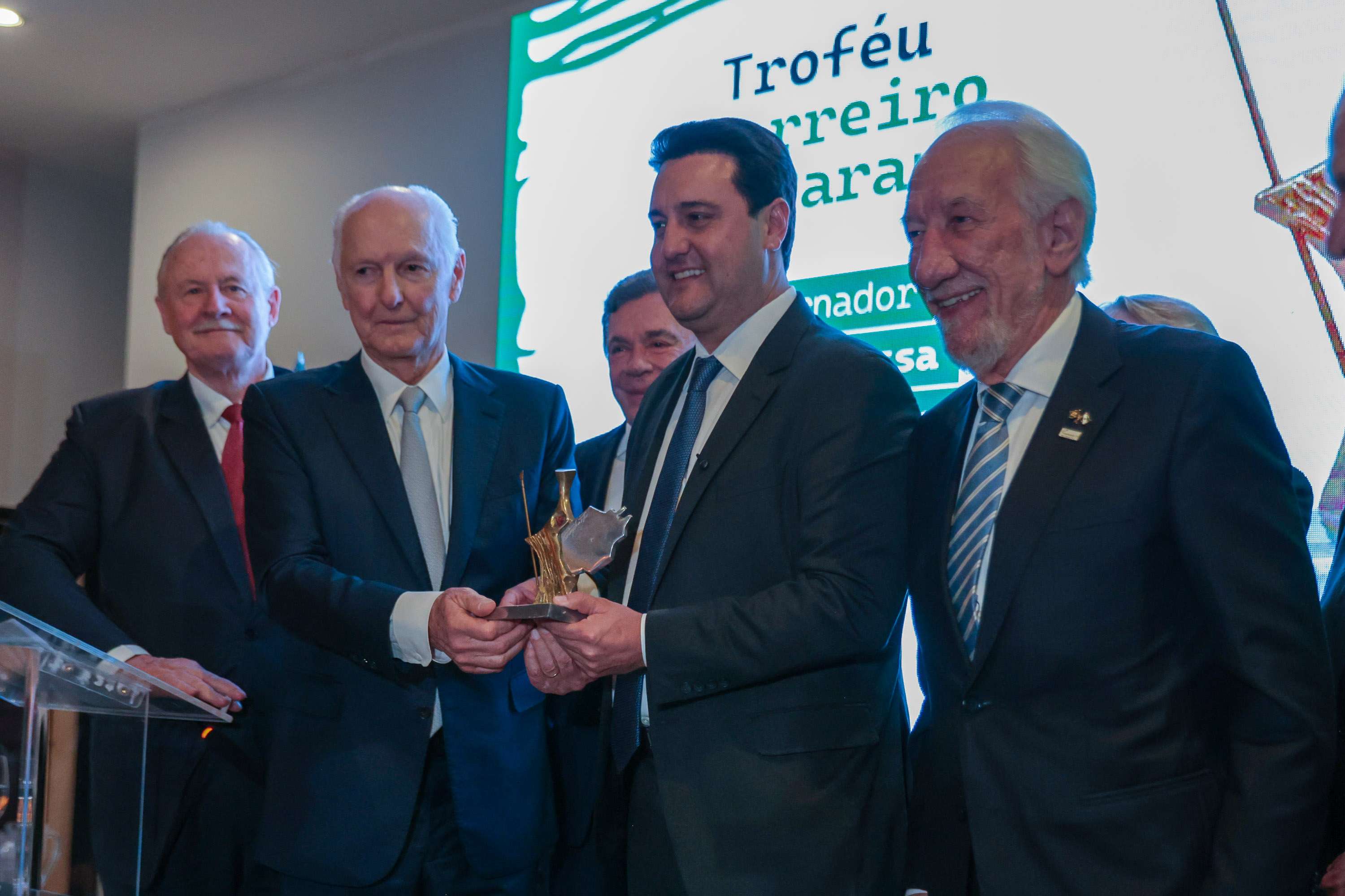 O governador Carlos Massa Ratinho Junior recebeu nesta segunda-feira (3) o Troféu Guerreiro do Pa...