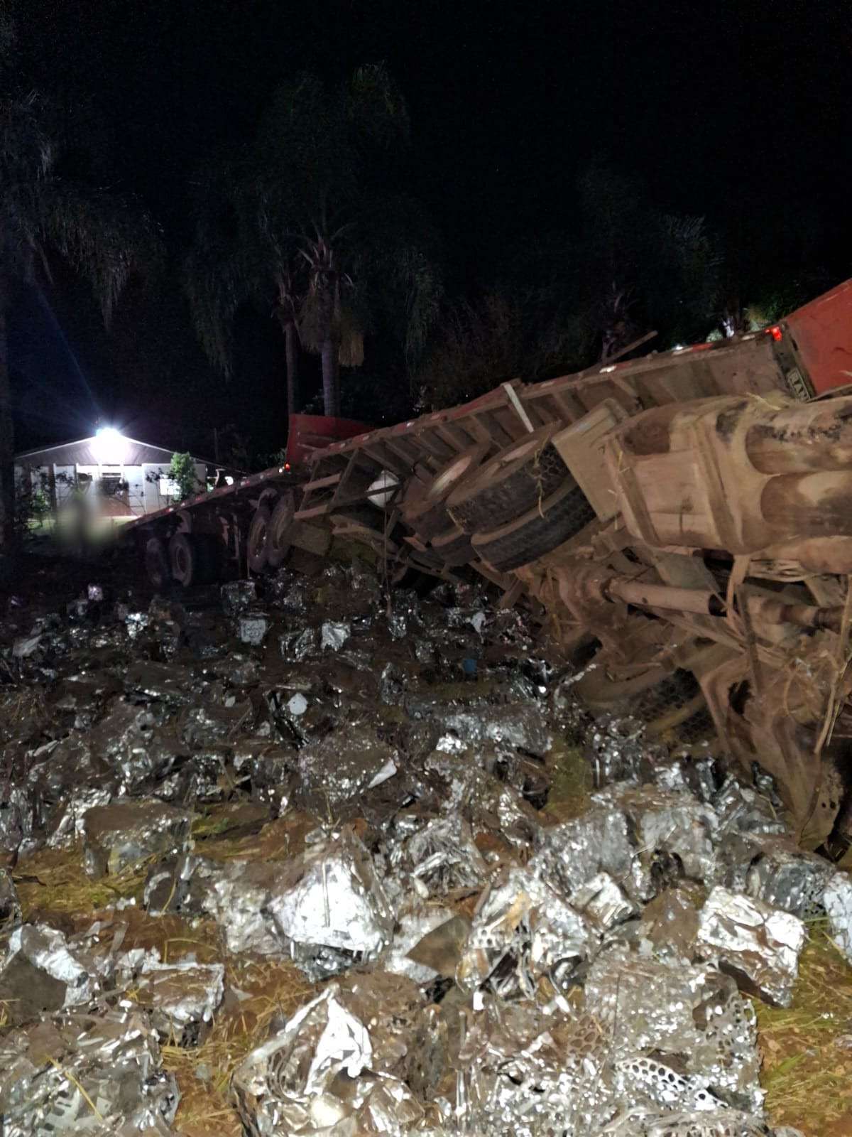 Tombamento de caminhão interdita PR-281 durante a noite, em Chopinzinho