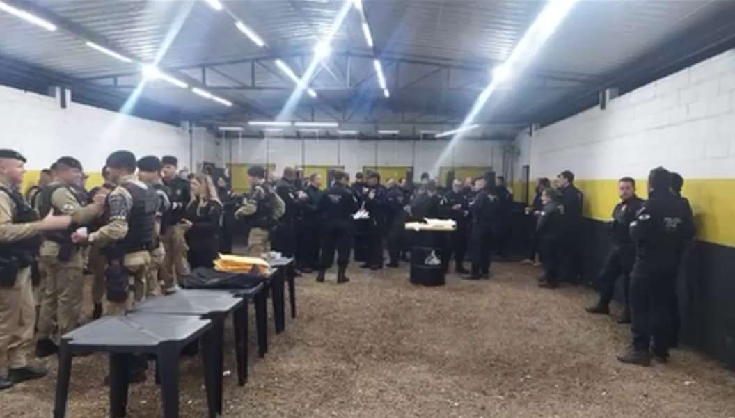 A equipe polícial está realizando buscas no local e investigando as causas do homicídio.