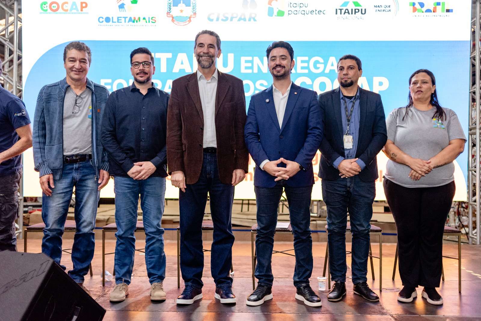 A primeira entrega aconteceu na sede da Cooperativa dos Catadores de Materiais Recicláveis de Apucarana (Cocap). Em parceria com Itaipu Parquetec e o Consórcio Intermunicipal de Saneamento do Paraná (Cispar), a Itaipu entregou equipamentos e um caminhão para estruturar o Programa Coleta Mais, de Apucarana, promovendo a inclusão dos catadores de materiais recicláveis, como estratégia para impulsionar o desenvolvimento sustentável. O convênio faz parte do Programa de Gestão de Resíduos Sólidos, presente em 50 municípios do Paraná.