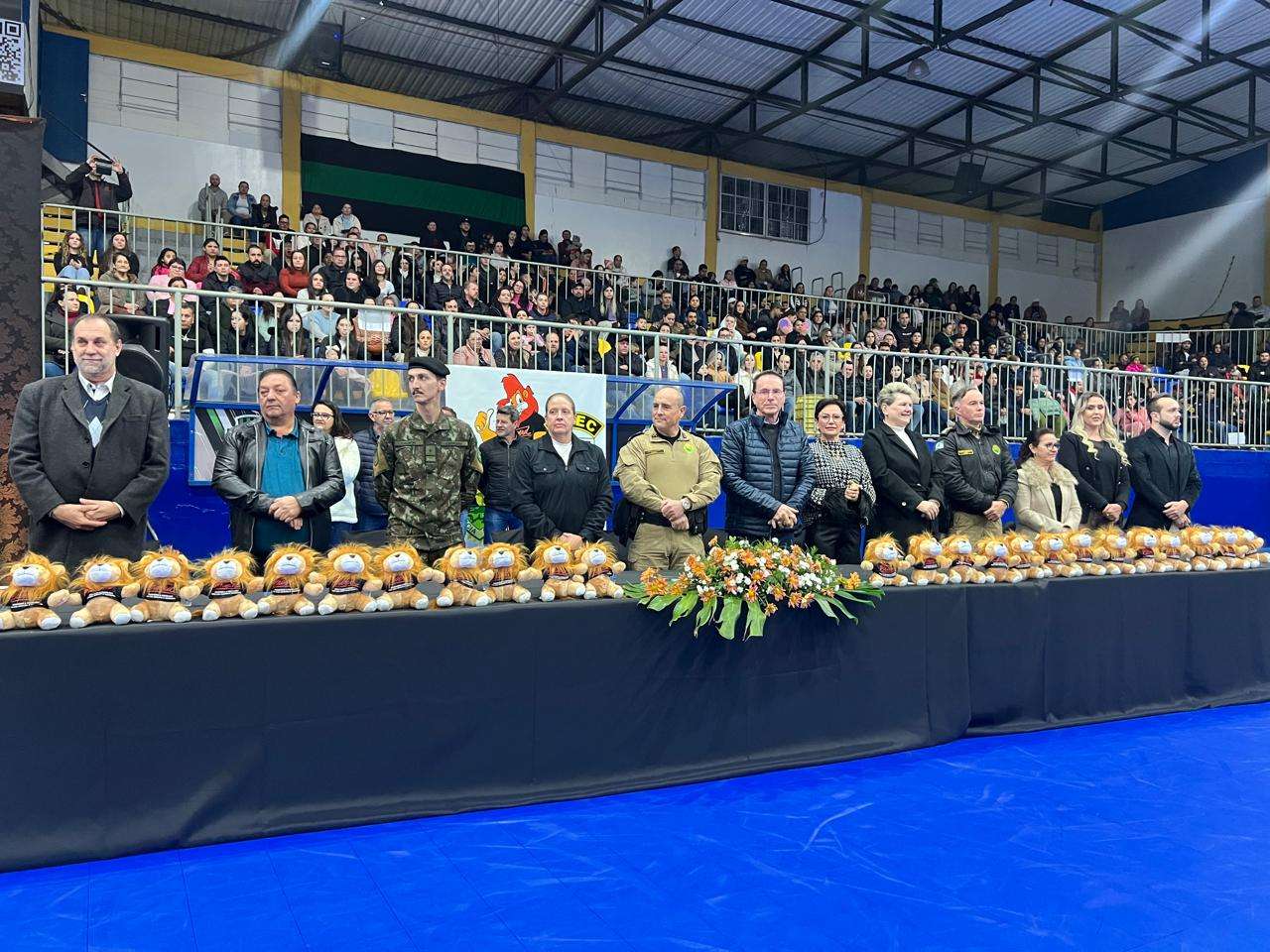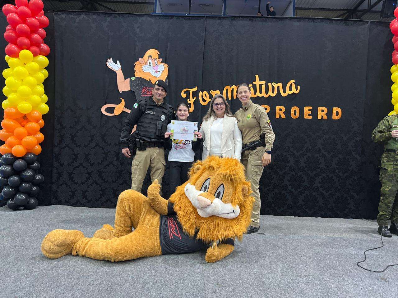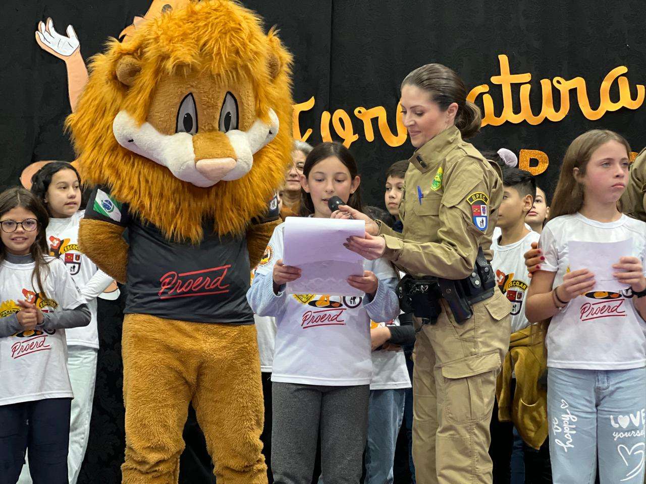 Receberam aulas do Proerd neste semestre: Escola Municipal Bom Pastor; Escola Municipal Frei Deodato; Escola Municipal Higino Antunes Pires Neto; Escola Municipal Madre Boaventura; Escola Municipal Nossa Senhora do Sagrado Coração; Escola Municipal Nossa Senhora de Fátima; Escola Municipal Profº Rubens Amélio Bonatto e Escola Municipal Recanto Feliz. O evento reuniu além de alunos de 5º anos que receberam aulas do Programa, professores, policiais, familiares e autoridades.