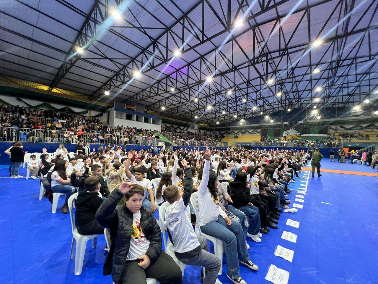 Na noite de quinta-feira, (03) aconteceu no Ginásio Arrudão foi realizada a primeira formatura do Programa Educacional de Resistência às Drogas e à Violência (Proerd) deste ano de 2025 em Francisco Beltrão. Neste semestre, as aulas foram aplicadas para 575 estudantes de 5º anos, de 26 turmas diferentes. Ao todo oito escolas municipais receberam as aulas.