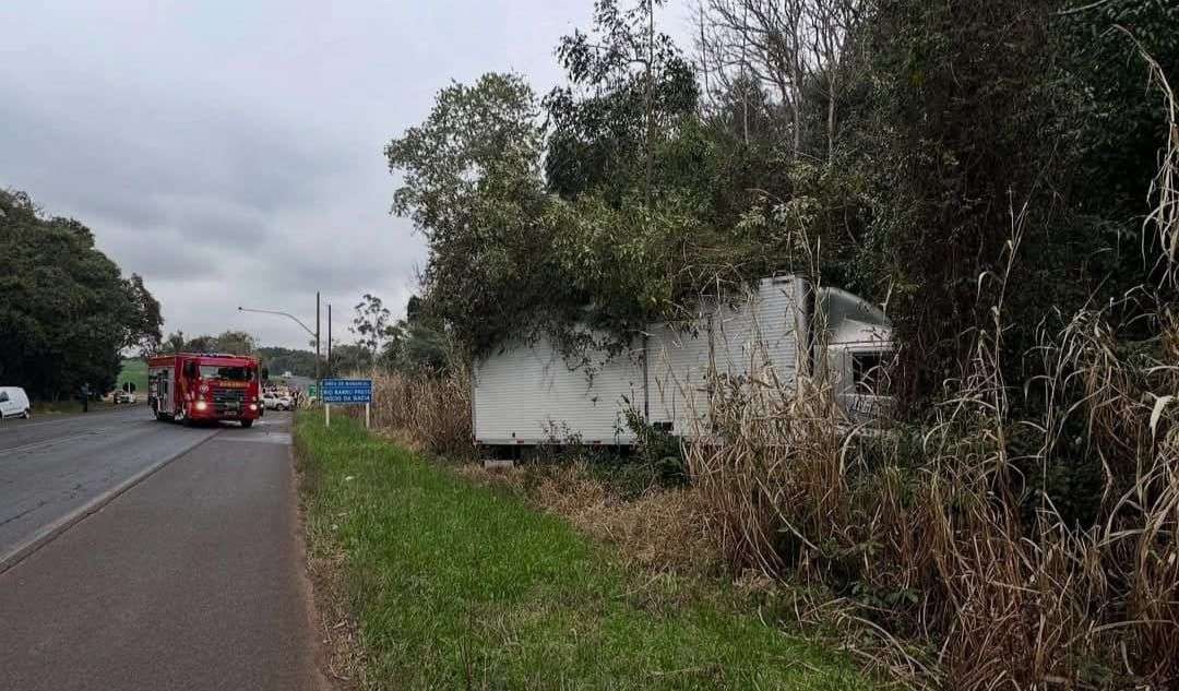O caminhão era conduzido por uma mulher, que felizmente não se feriu.
