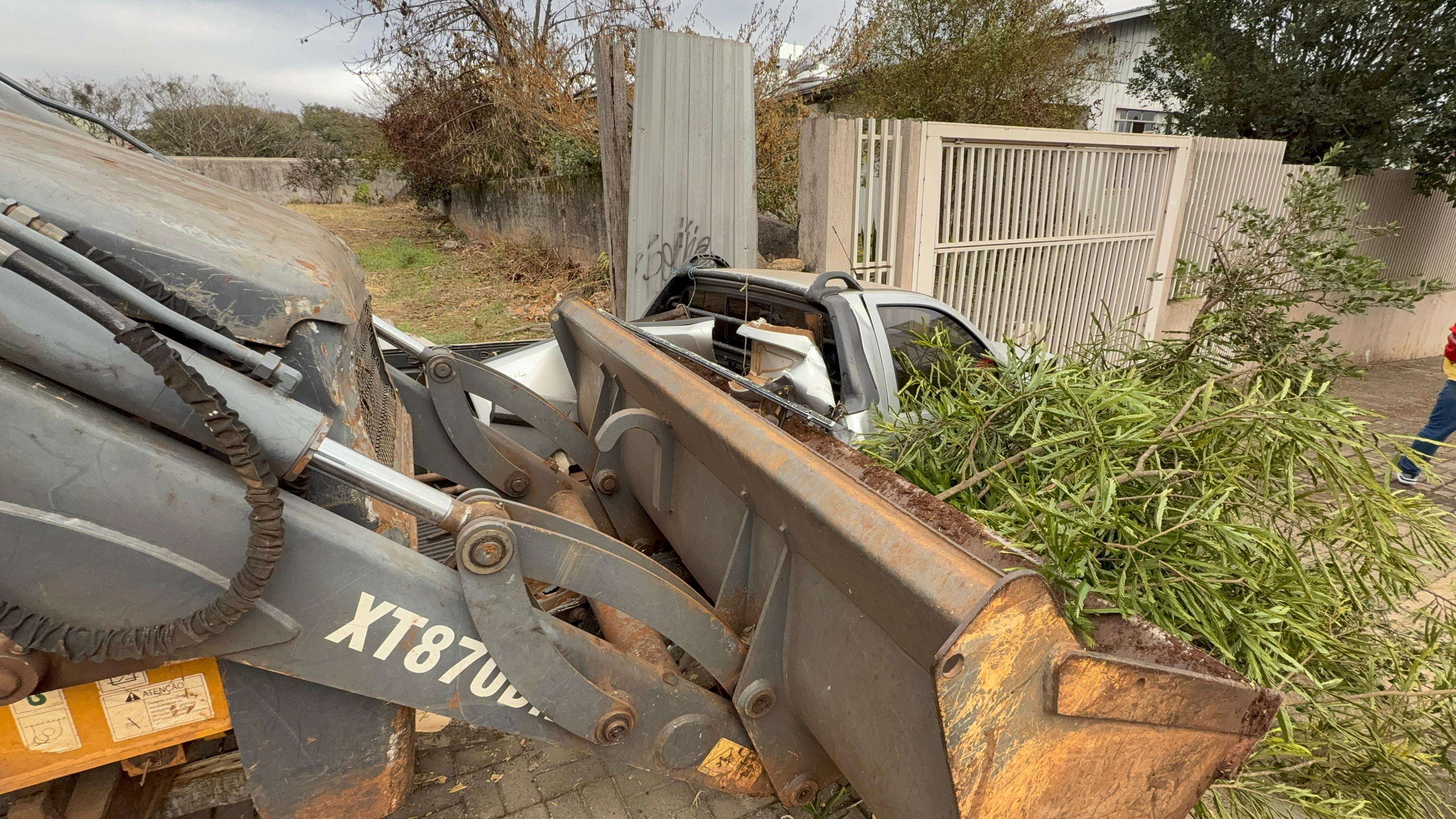 Segundo informações a Pá Carregadeira que descia a rua Romeu Lauro Werlang quando o condutor perdeu o controle da direção e bateu numa Fiat/Strada da prefeitura que estava estacionada e posteriormente bateu num GM/Ônix que também estava estacionado e o Ônix bateu num GM/Camaro.