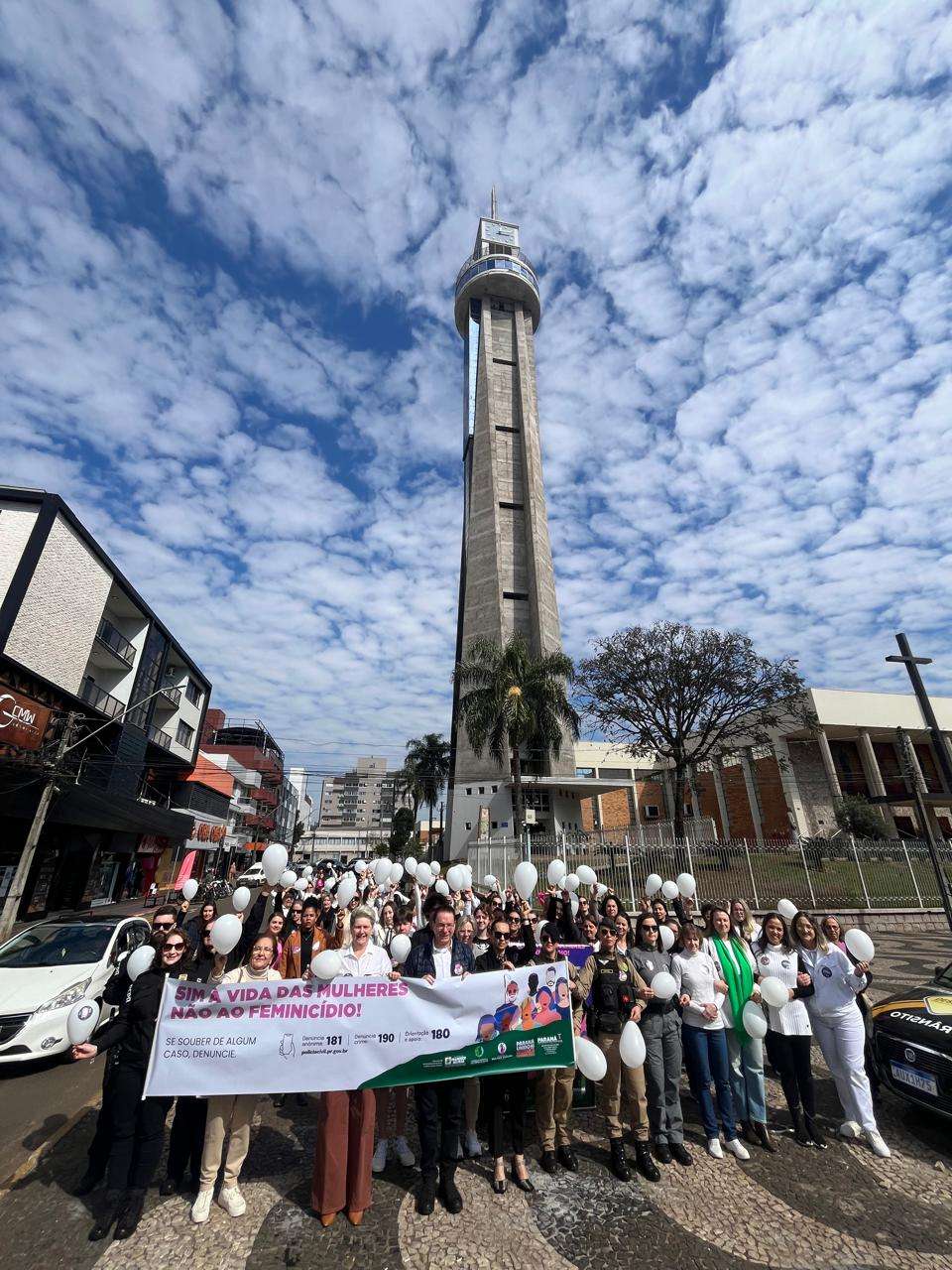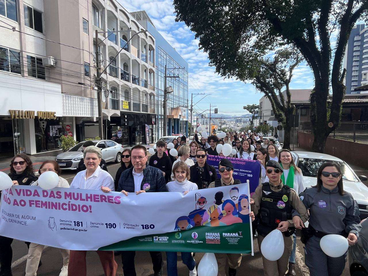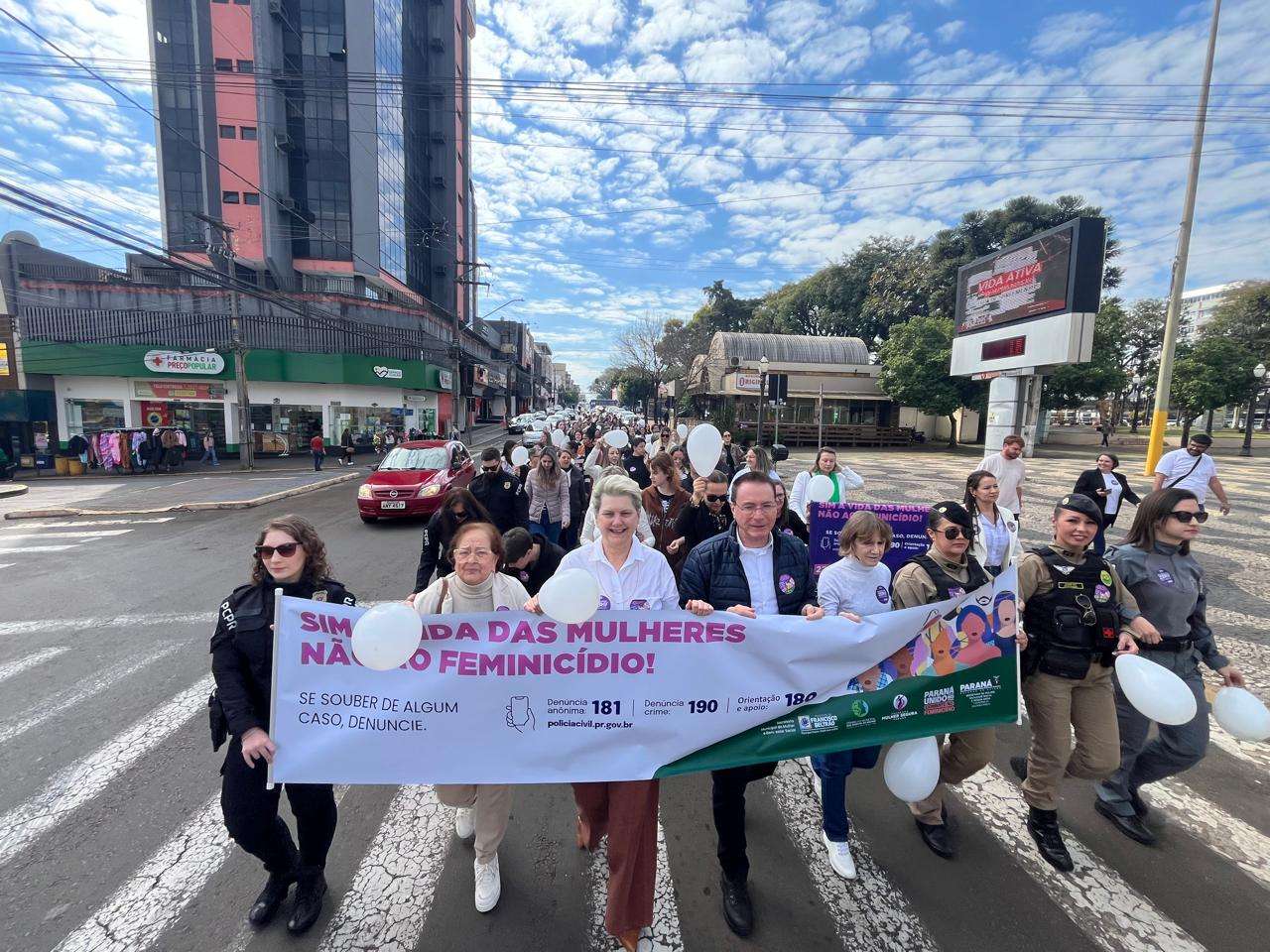 Representantes de diferentes segmentos da sociedade participaram nesta terça-feira (22) da Caminhada do Meio-Dia em Francisco Beltrão. O evento ocorreu de forma simultânea em 180 cidades paranaenses e lembra o Dia Estadual de Combate ao Feminicídio em 22 de julho – em referência à morte da advogada Tatiane Spitzner, em Guarapuava.