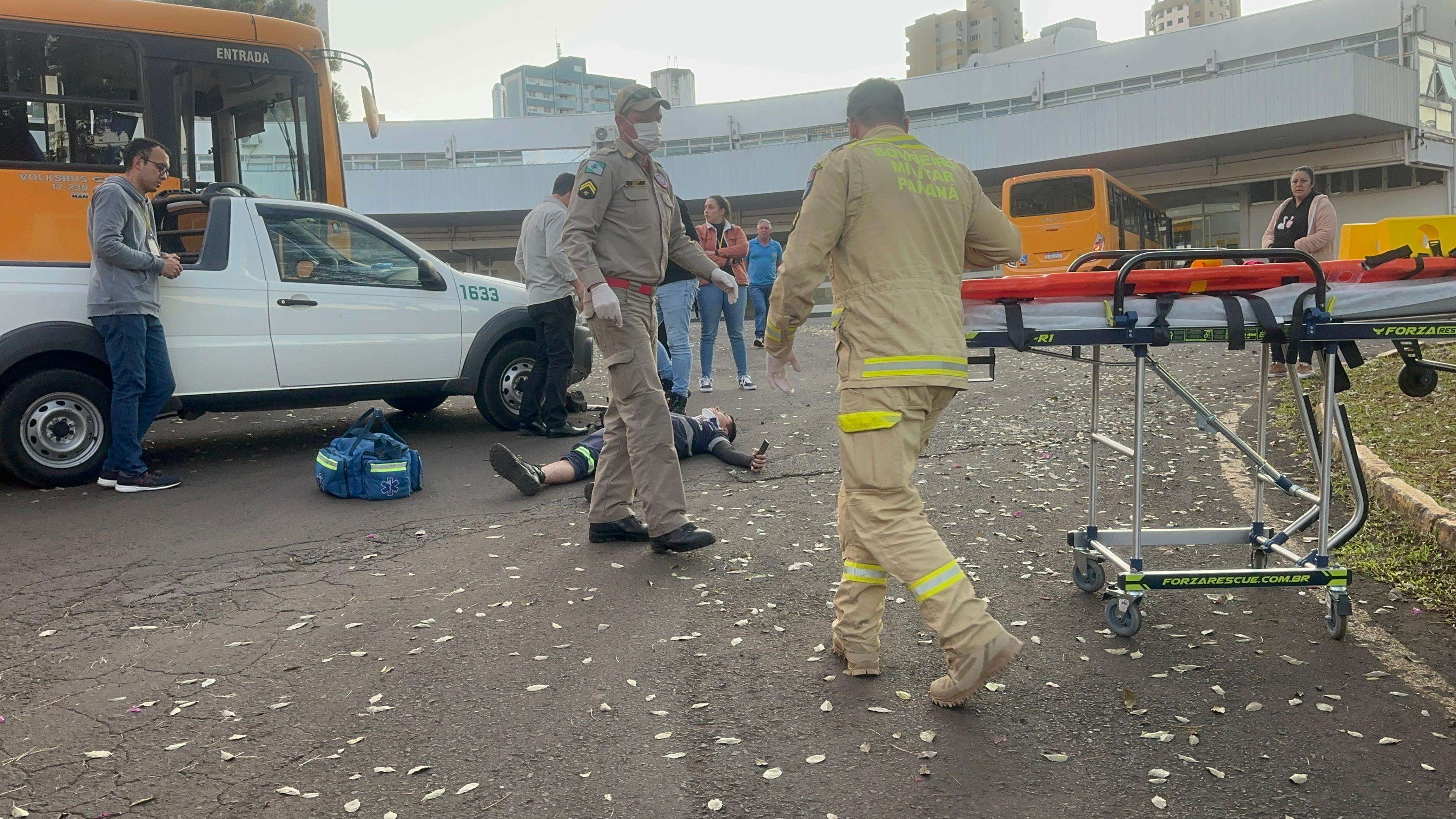 De acordo com informações apuradas no local, o motociclista saía do terminal urbano, espaço destinado à circulação de ônibus, quando acabou colidindo com o veículo utilitário que prestava serviço na área.