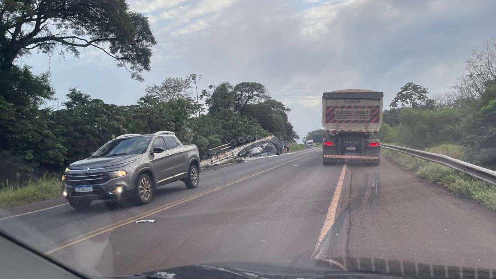 Segundo informações repassadas pela Polícia Militar, o veículo envolvido foi um caminhão Volvo/FH 460 6X2T. O condutor, um homem de 27 anos, relatou que seguia no sentido Mangueirinha quando acabou adormecendo ao volante. Com isso, perdeu o controle da direção e saiu da pista.