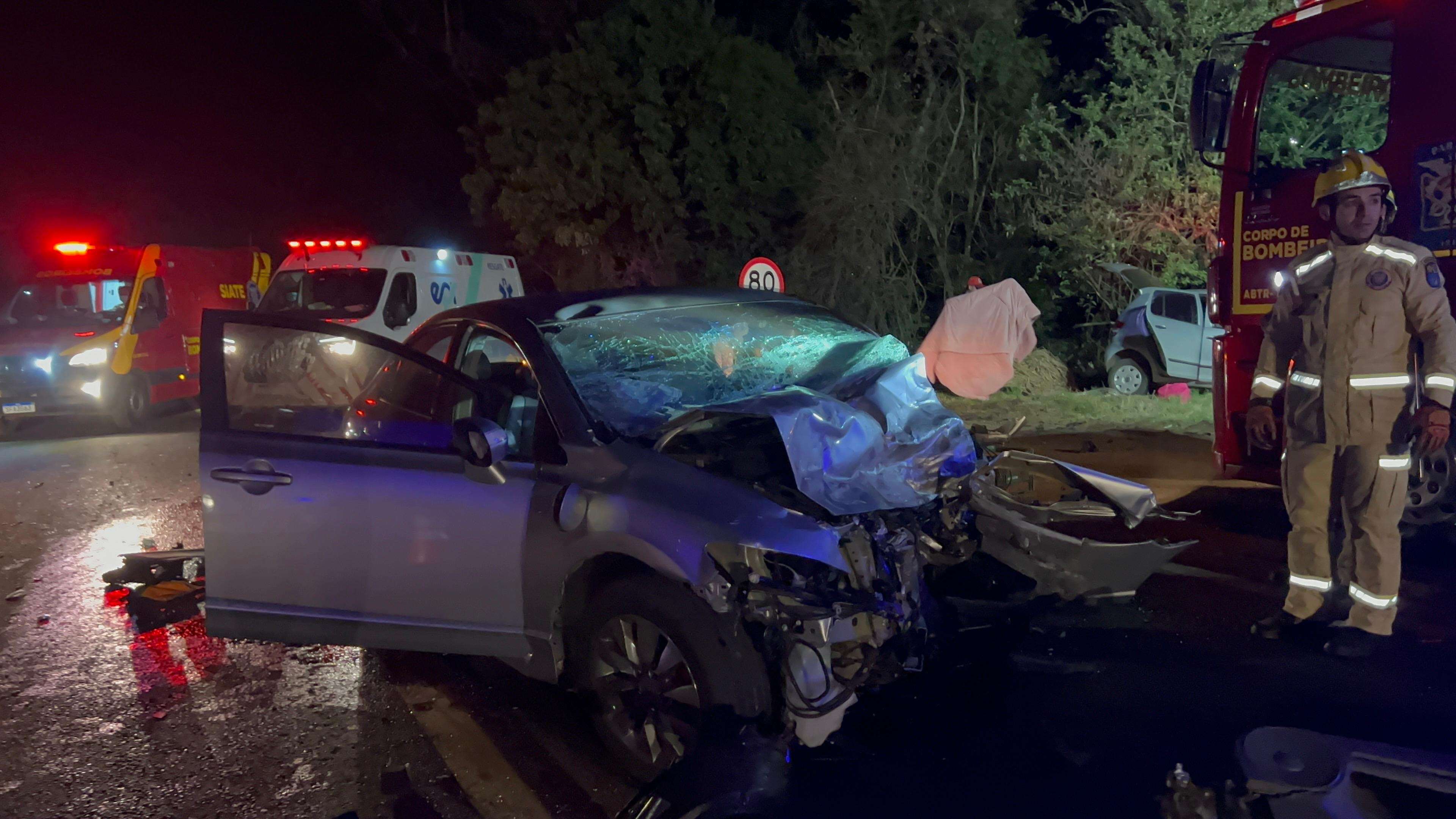 Na noite desta terça-feira (12), um grave acidente foi registrado na PR-483, no bairro Água Branca, em Francisco Beltrão, envolvendo dois veículos: um Volkswagen Fox e um Honda Civic.