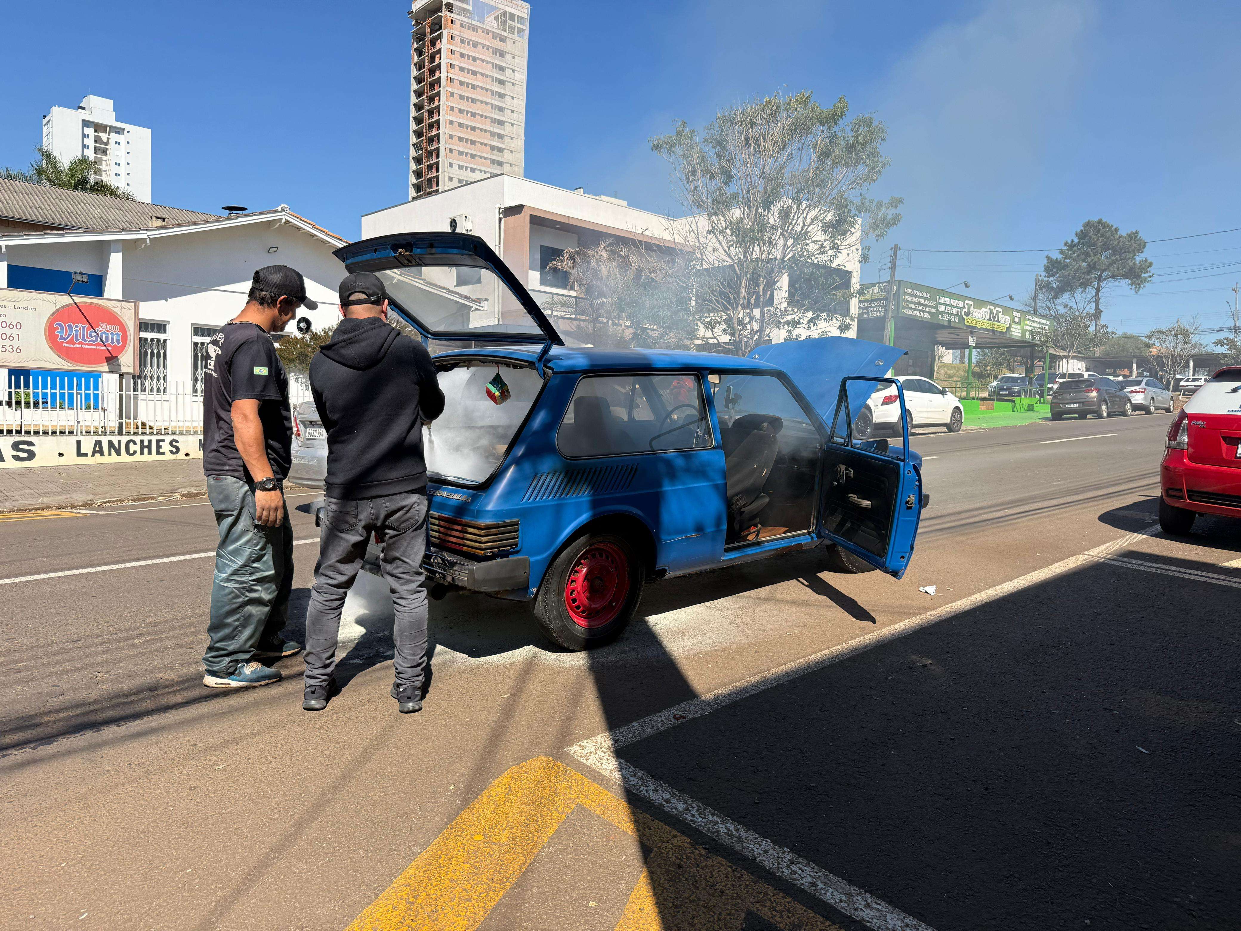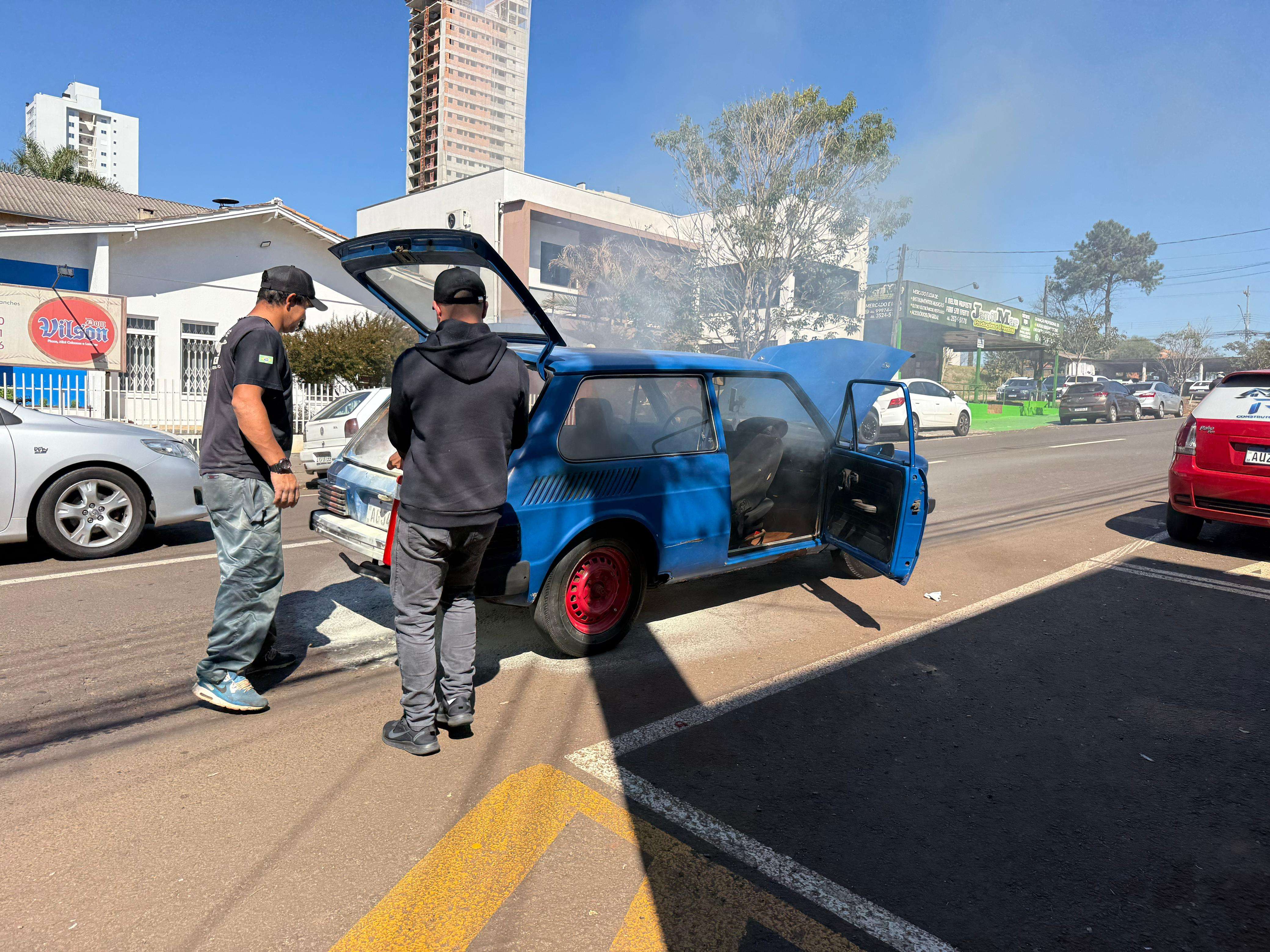 Um veículo VW/Brasília transitava pela rua Florianópolis, no cruzamento com a rua Octaviano Teixeira dos Santos, quando começou a apresentar fogo embaixo e encher de fumaça. O condutor percebeu o problema, parou o carro no meio da via e retirou rapidamente uma criança que estava no banco traseiro.