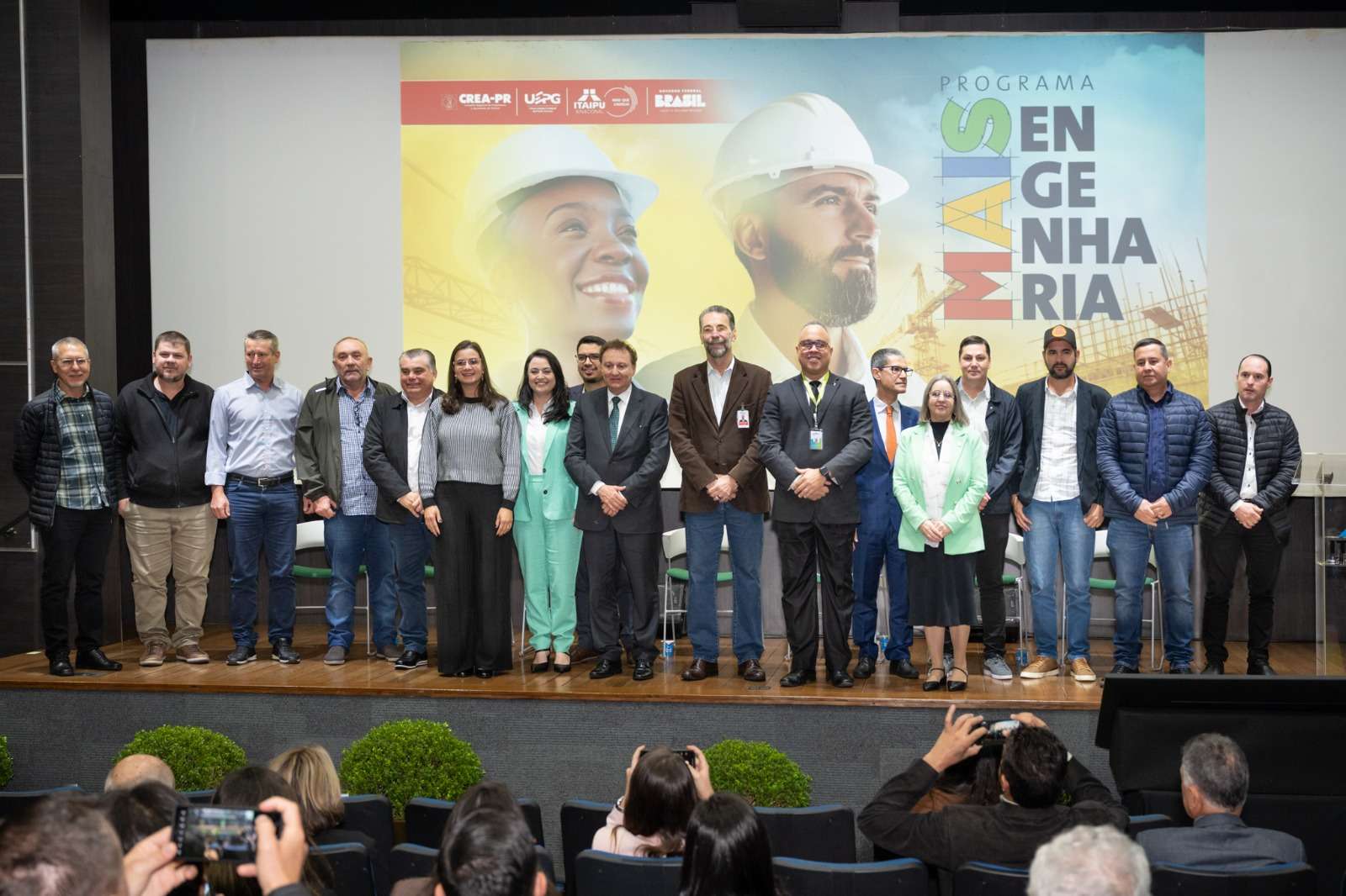 Também participaram da cerimônia os diretores de Itaipu Renato Sacramento (técnico executivo) e Luiz Fernando Delazari (jurídico), além de autoridades do Crea-PR e da UEPG, e prefeitos e prefeitas dos municípios selecionados.