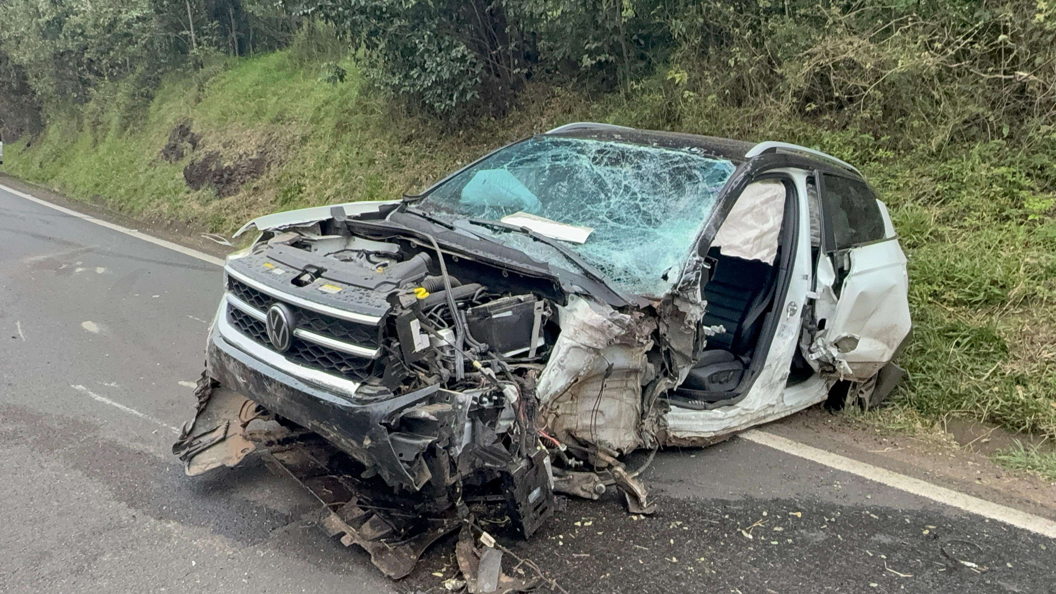 De acordo com informações preliminares, um WV/Taos tentou ultrapassar uma carreta Volvo em local proibido e colidiu de frente com o Gol que seguia no sentido Ampére a Francisco Beltrão. Durante a manobra, o Taos ficou preso ao caminhão e foi arrastado pela rodovia.