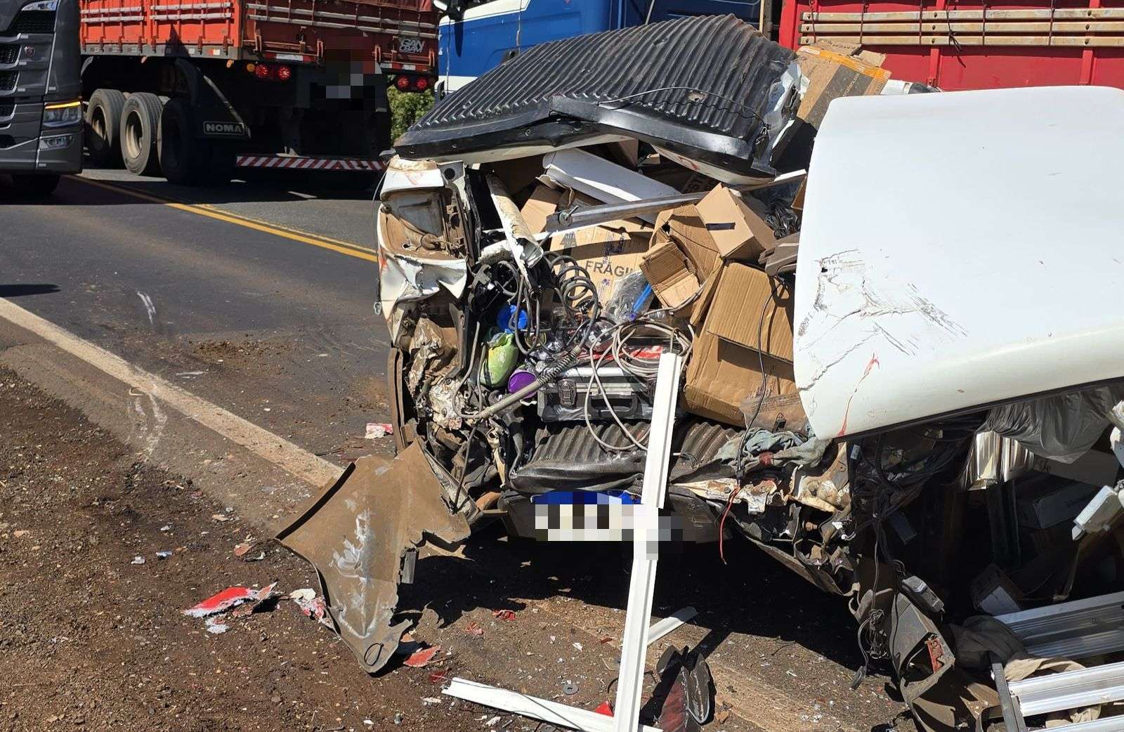 Com o impacto, a carreta tombou logo após a ponte. No caminhão estavam o motorista, sua esposa e uma criança. O condutor sofreu ferimentos moderados e foi socorrido pelas equipes do SAMU e do Corpo de Bombeiros. A mulher e a criança também tiveram ferimentos moderados e receberam atendimento no local. Já o motorista do Fiat Strada não se feriu, registrando apenas danos materiais em seu veículo.