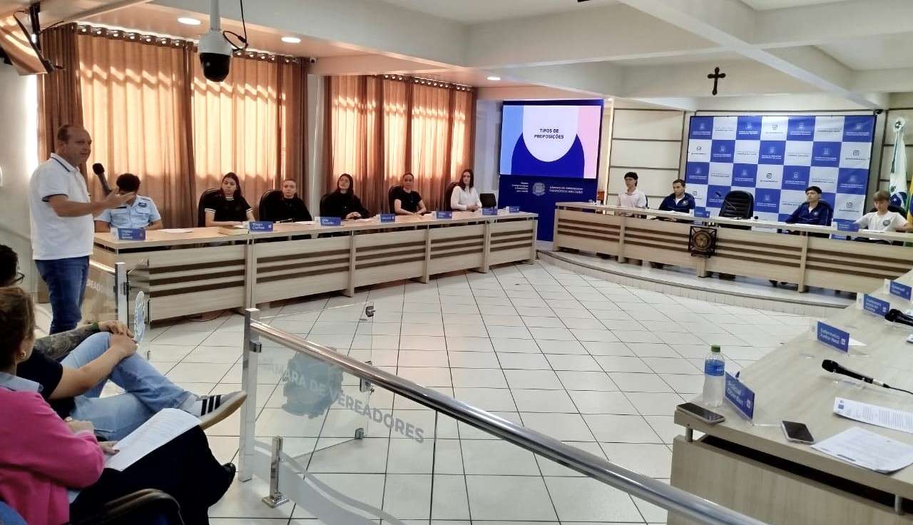 O Parlamento Jovem da Câmara de Vereadores de Francisco Beltrão, empossado recentemente, realiza sua primeira sessão na próxima quarta-feira, dia 27 de agosto, às 19h00, no plenário do Legislativo. Nesta semana foi realizada uma reunião preparatória, coordenada pelo vereador Julio Spada, com a participação de assessores da Câmara, para o repasse de informações e orientações. Na sessão será eleita a Mesa Diretora.