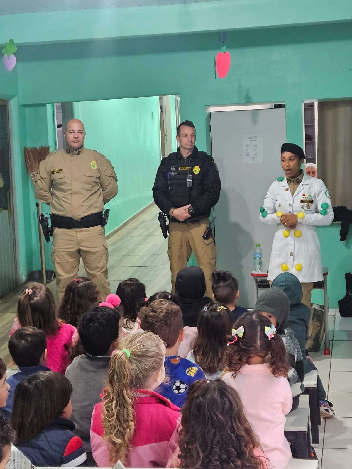 Na ocasião, os militares conversaram com as crianças sobre a profissão de policial, destacando a importância do trabalho desenvolvido pela corporação na segurança da comunidade. Além disso, o momento também foi dedicado a orientar os pequenos sobre a prevenção ao abuso sexual infantil, abordando o tema de forma didática e educativa.