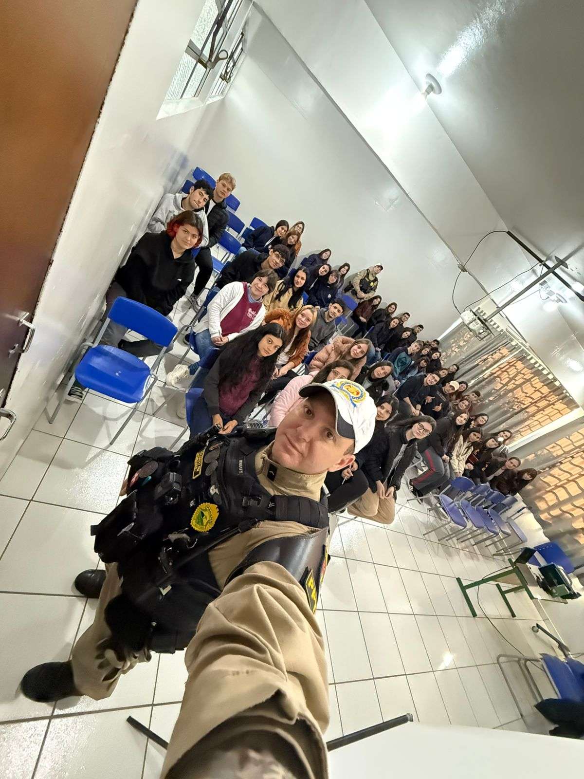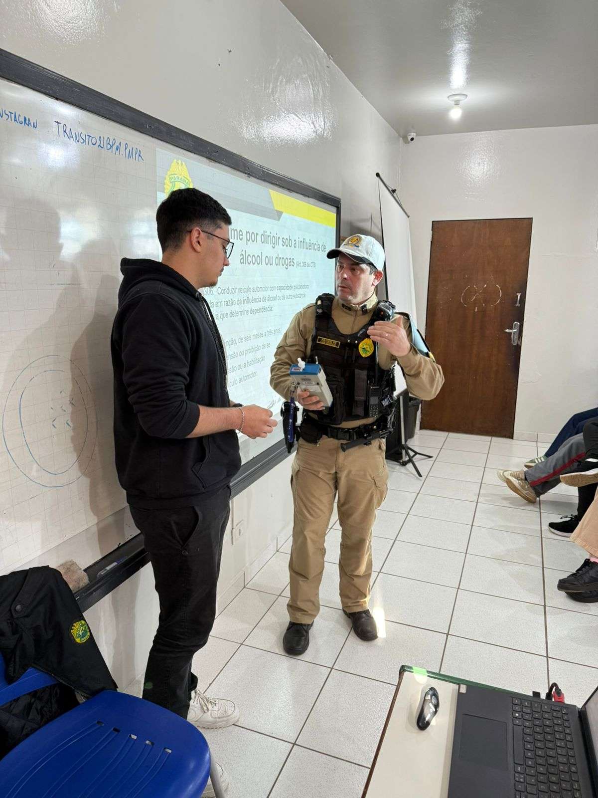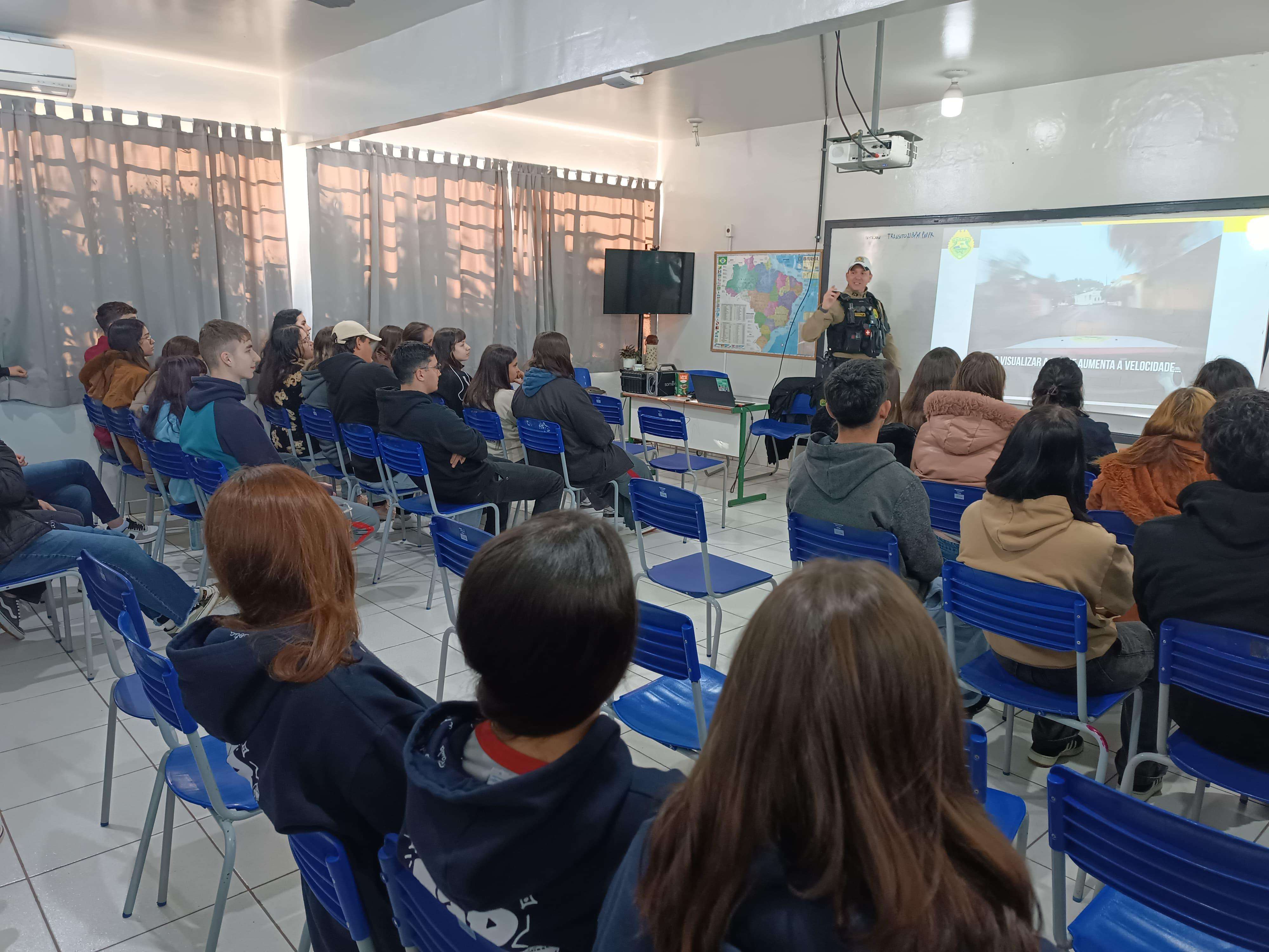 Nesta quinta-feira (28), o Pelotão de Trânsito do 21°BPM da Polícia Militar do Paraná realizou mais uma ação do Projeto Jovem no Trânsito no Colégio Estadual Reinaldo Sass, em Francisco Beltrão. Durante o encontro, 44 alunos participaram de um diálogo educativo sobre segurança viária.