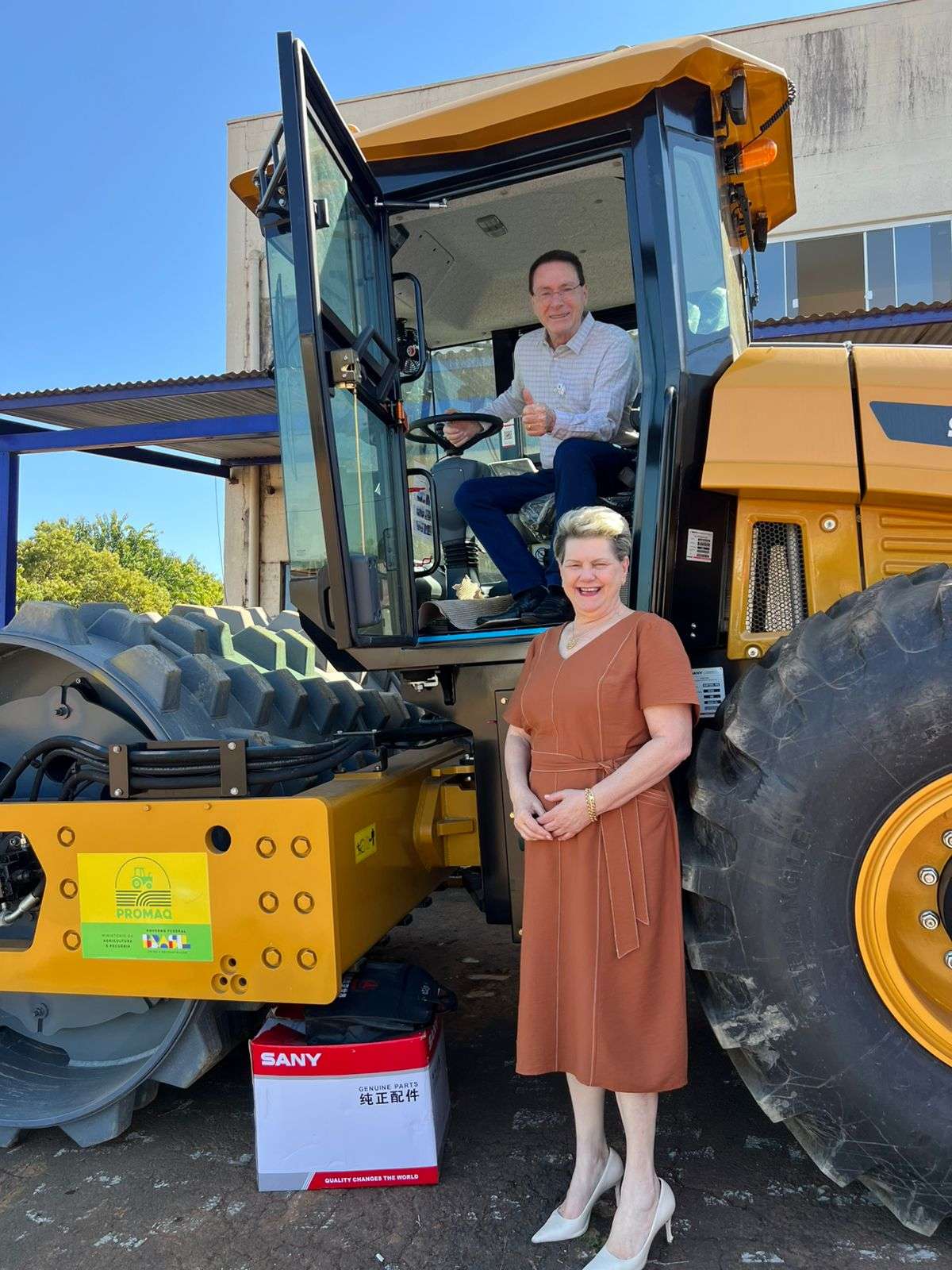 O prefeito Antonio Pedron e o deputado federal Nelsi Maria ‘Vermelho’ entregaram um novo rolo compactador para a Secretaria do Interior de Francisco Beltrão. O equipamento foi destinado através do programa Pró-Máquinas, do governo federal e custou quase R$ 500 mil.