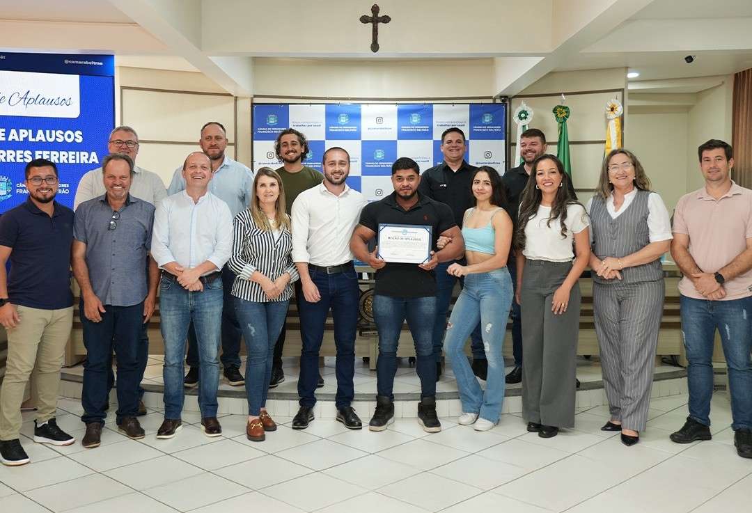 Por iniciativa do vereador Bruno Savarro, ele recebeu a Moção de Aplausos do Legislativo. “O seu exemplo de superação, dedicação e conquistas justifica a concessão desta honraria e o reconhecimento da Câmara. Também é a oportunidade de valorizar este talento, que certamente é um espelho para todos nós”, relata Bruno.