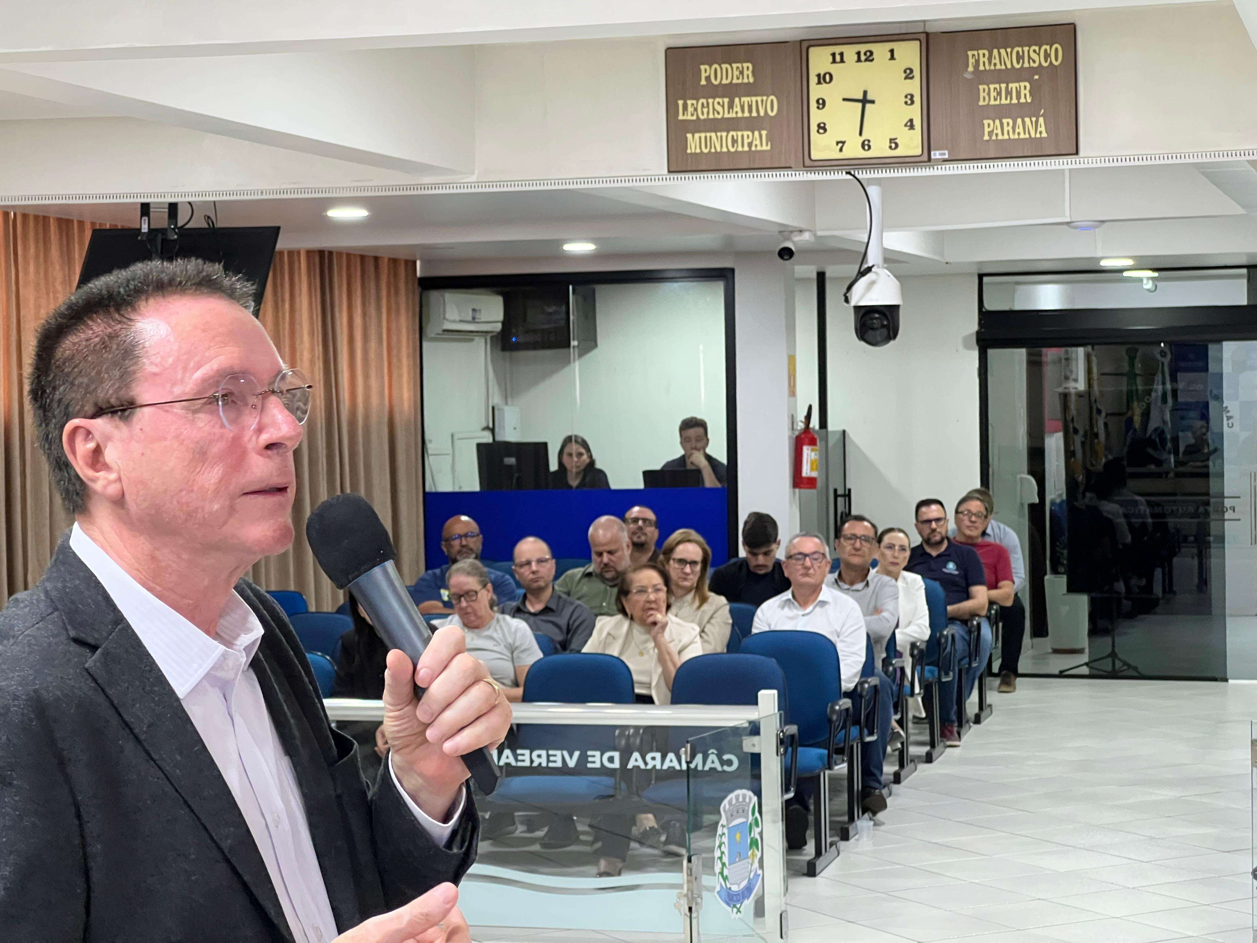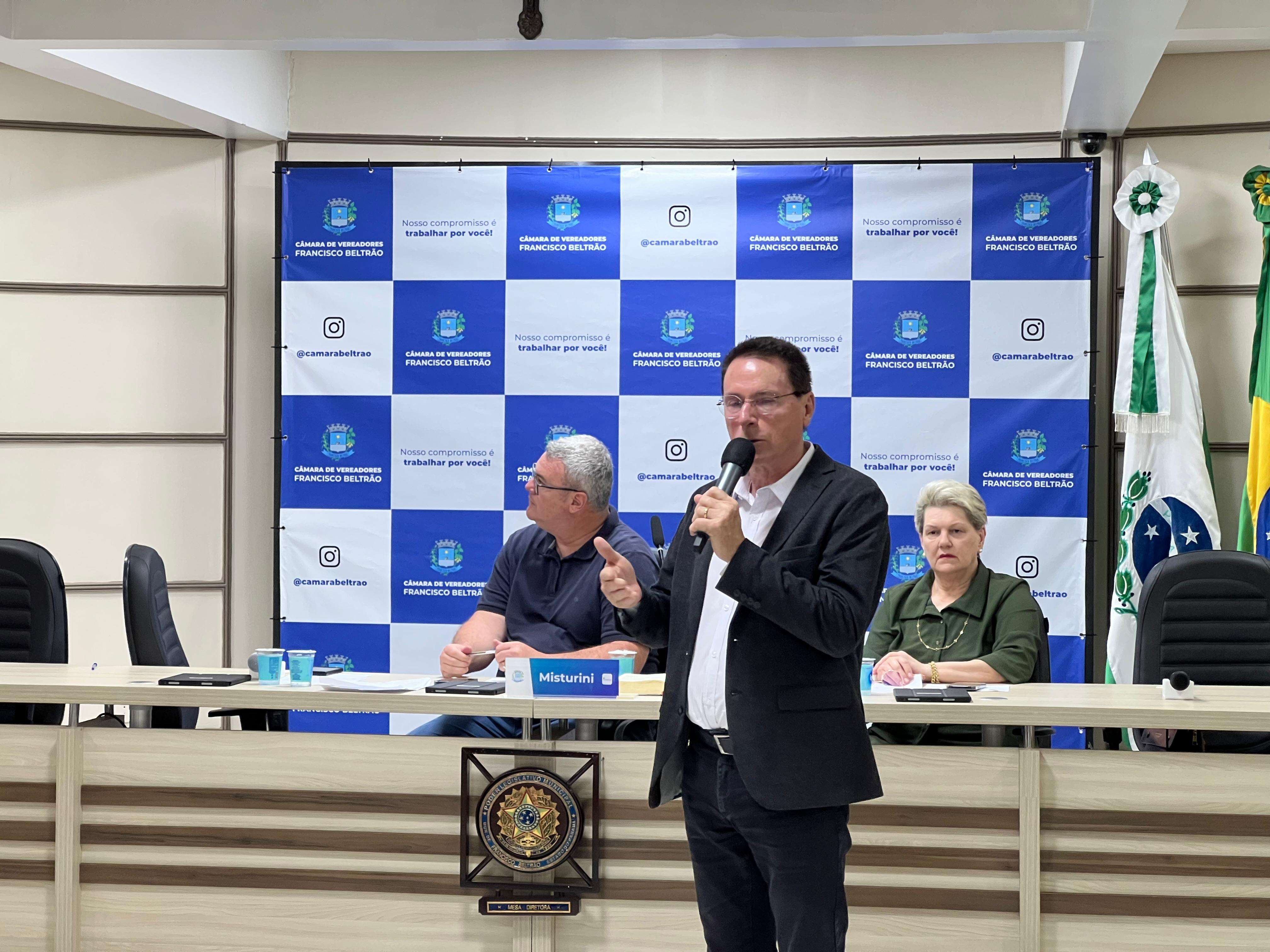 A entrega ocorreu durante a audiência pública de prestação de contas do quadrimestre, que detalha a saúde financeira de áreas como a Saúde, Educação e Assistência Social, além das finanças gerais da Prefeitura. O momento foi acompanhado pela vice-prefeita, Lurdinha Bertani, presidente da Comissão de Finanças e Orçamento, Fernando Misturini, secretários, vereadores Maria de Fátima, Aline Biezus, Bruno Savarro e Julio Spada e representantes de instituições.