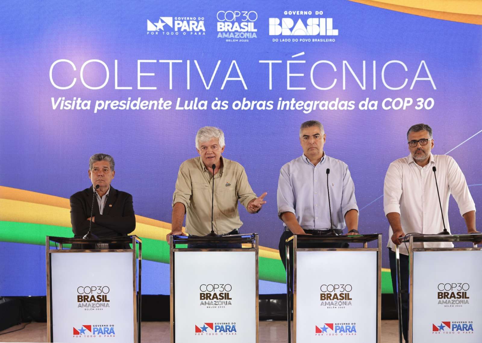 A vinda de Lula a Belém foi precedida de uma coletiva de imprensa com o diretor de Projeto da COP 30 (da Secop), Olmo Borges Xavier, do secretário de estado da Infraestrutura e Logística, Adler Silveira, do subsecretário de Ciência e Tecnologia para a Amazônia (Ministério da Ciência e Tecnologia), Dorival da Costa dos Santos, e do diretor de Coordenação da Itaipu, Carlos Carboni.