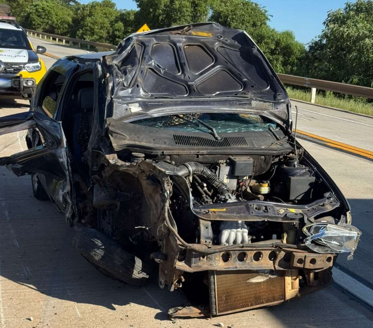 Uma colisão foi registrada na Avenida Paraná, no cruzamento com a Rua Giocondo Felipe, no bairro Vila Nova. O acidente envolveu uma motocicleta e uma Captiva, nas proximidades da ponte.