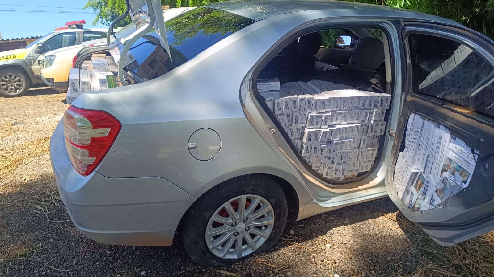 O veículo e as caixas de cigarro, avaliadas em aproximadamente R$ 100 mil, foram apreendidos e encaminhados para a Receita Federal.